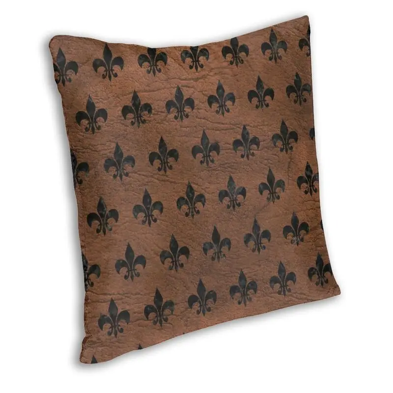 Коричневый кожаный чехол для подушки с геометрической текстурой, мо...