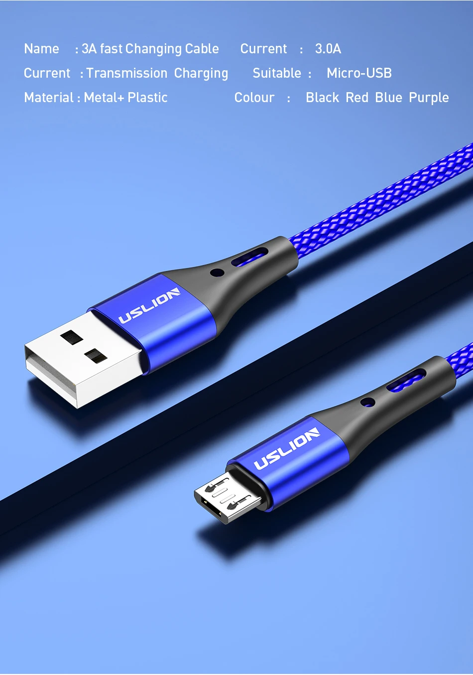 USB Micro-кабель USLION 3A, кабель для быстрой зарядки и передачи д...