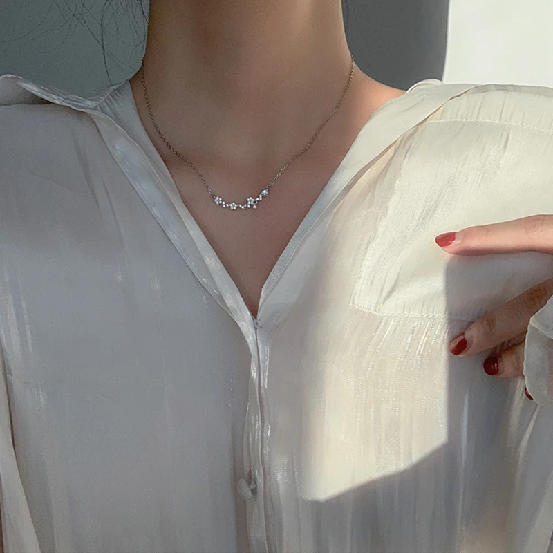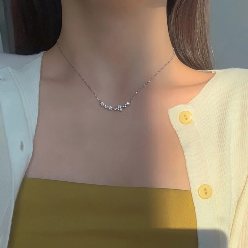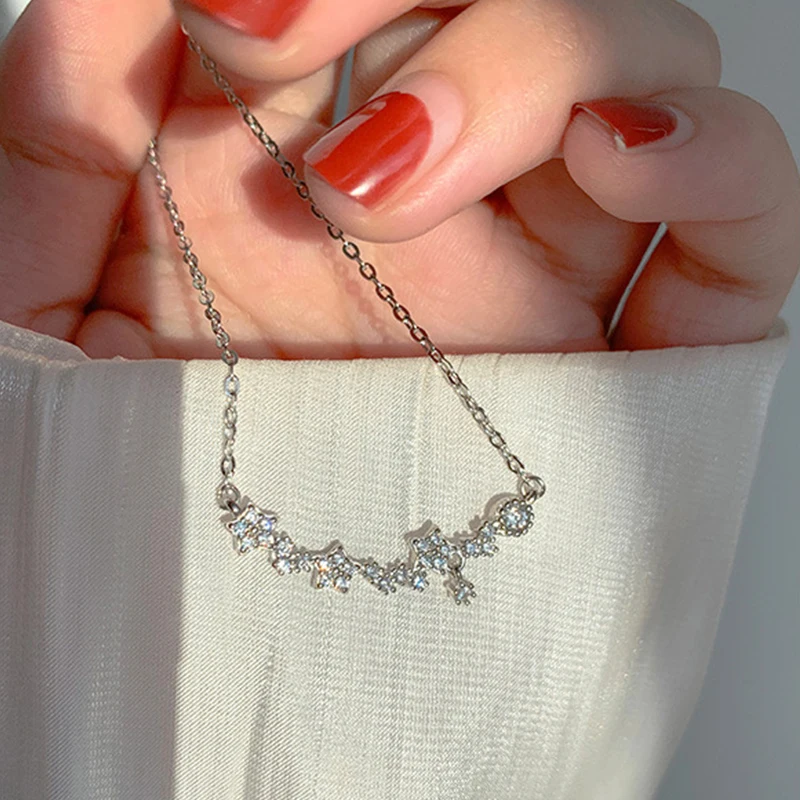 Женское блестящее ожерелье ANENJERY, ювелирное изделие из стерлингового серебра 925 пробы с цирконием и звездой, изысканный светильник на цепочке