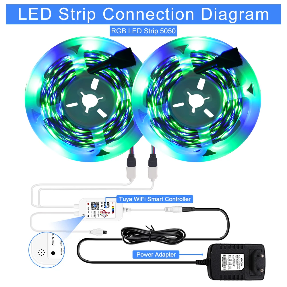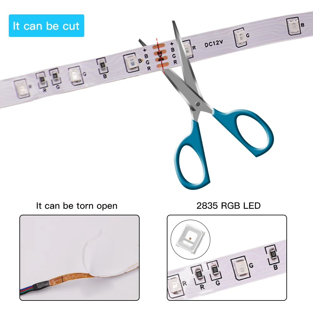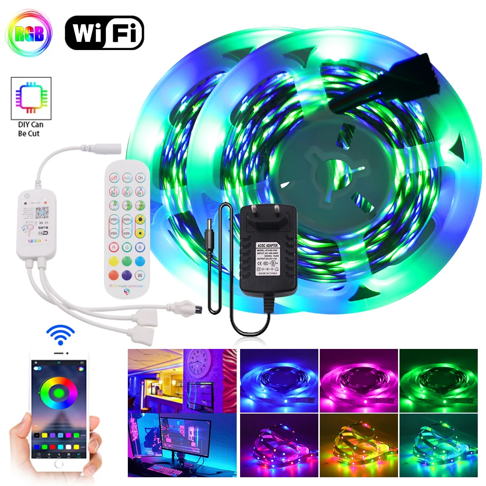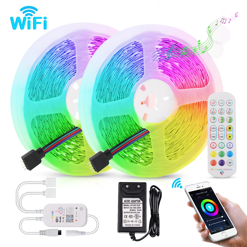 Светодиодная ленсветильник RGB 2835 SMD гибкая лента Wi-Fi управление музыкой 12 В Водонепроницаемая Диодная лента 5 м 10 м 15 м светильник Светка ТВ компьютерный Декор