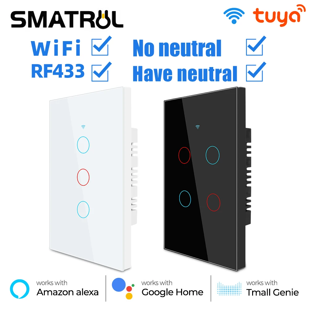 SAMTRUL Tuya Wi-Fi Смарт сенсорный выключатель светильник без нейтральный провод 110V 220V 1234Gang США 433RF дистанционного включения выключения для Alexa Google Home