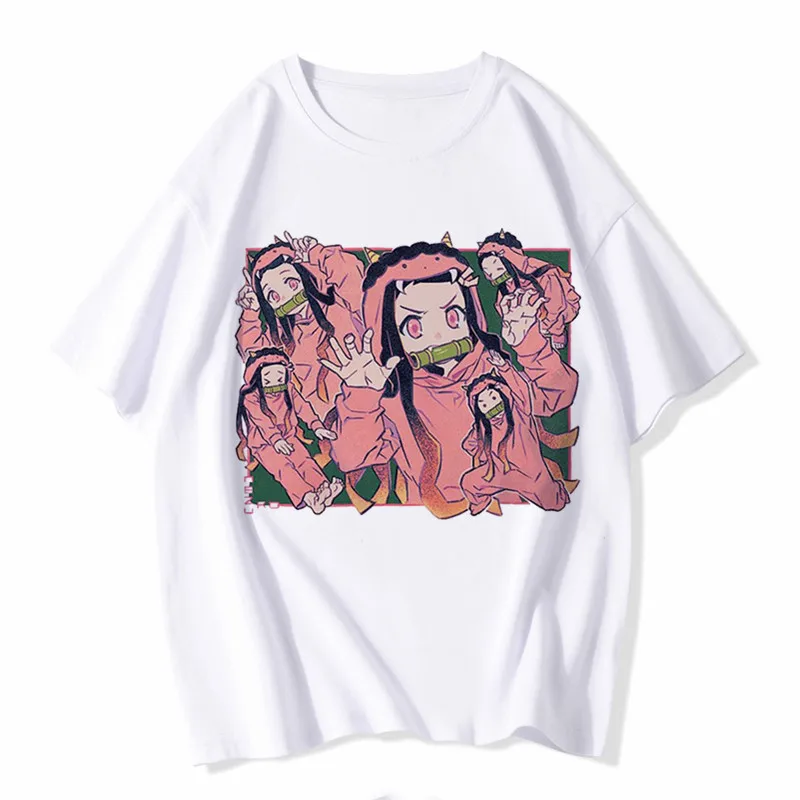 Футболки с японским аниме принтом убийца демонов, женские футболки, повседневные топы, базовая белая футболка с коротким рукавом и круглым вырезом для девушек, Прямая поставка