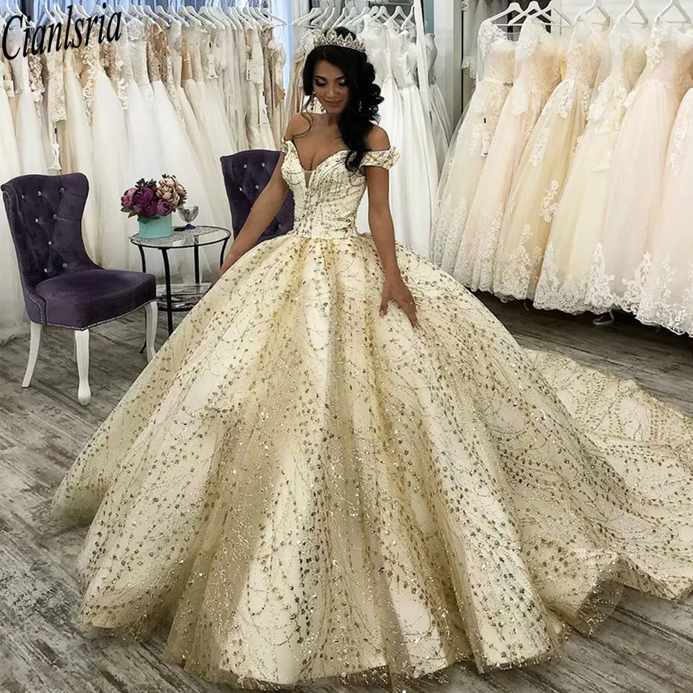 2021 Свадебные платья принцессы, свадебное платье, Золотая аппликац...