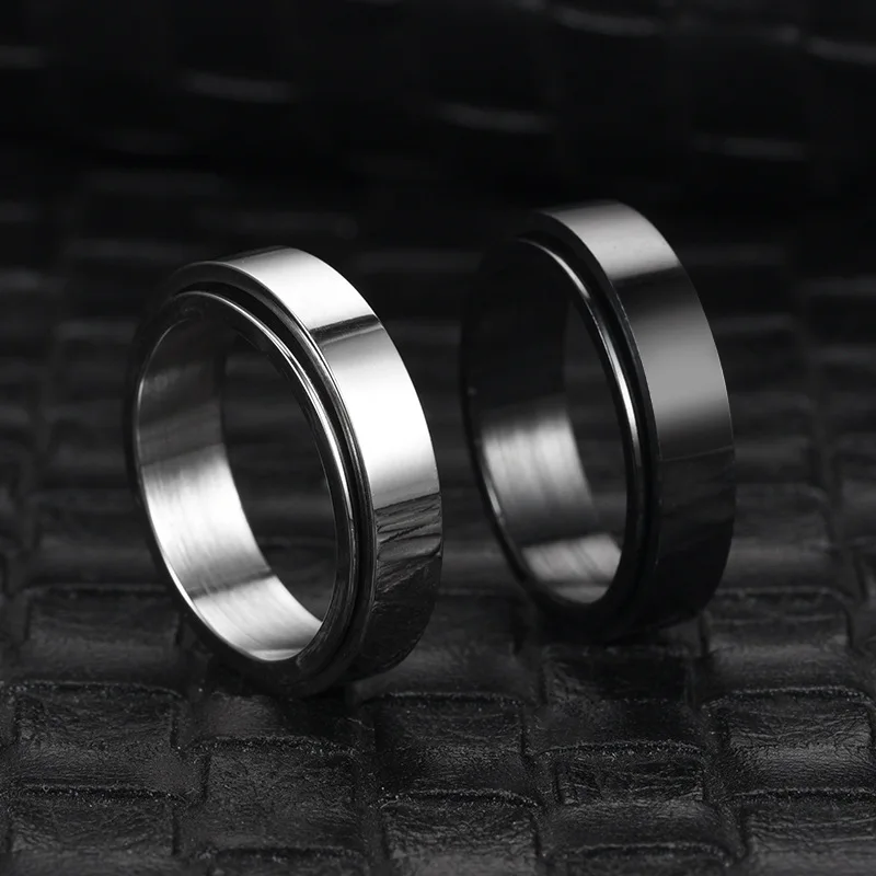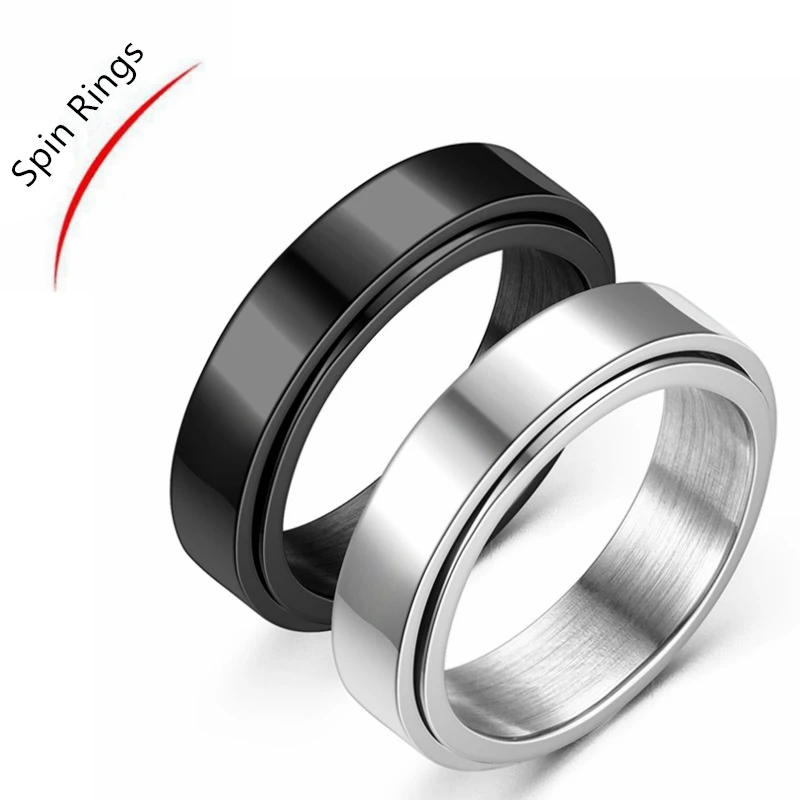 Модные креативные вращающиеся кольца черного и серебряного цвета для мужчин и женщин, с гладкой поверхностью, яркие вращающиеся кольца из титановой стали