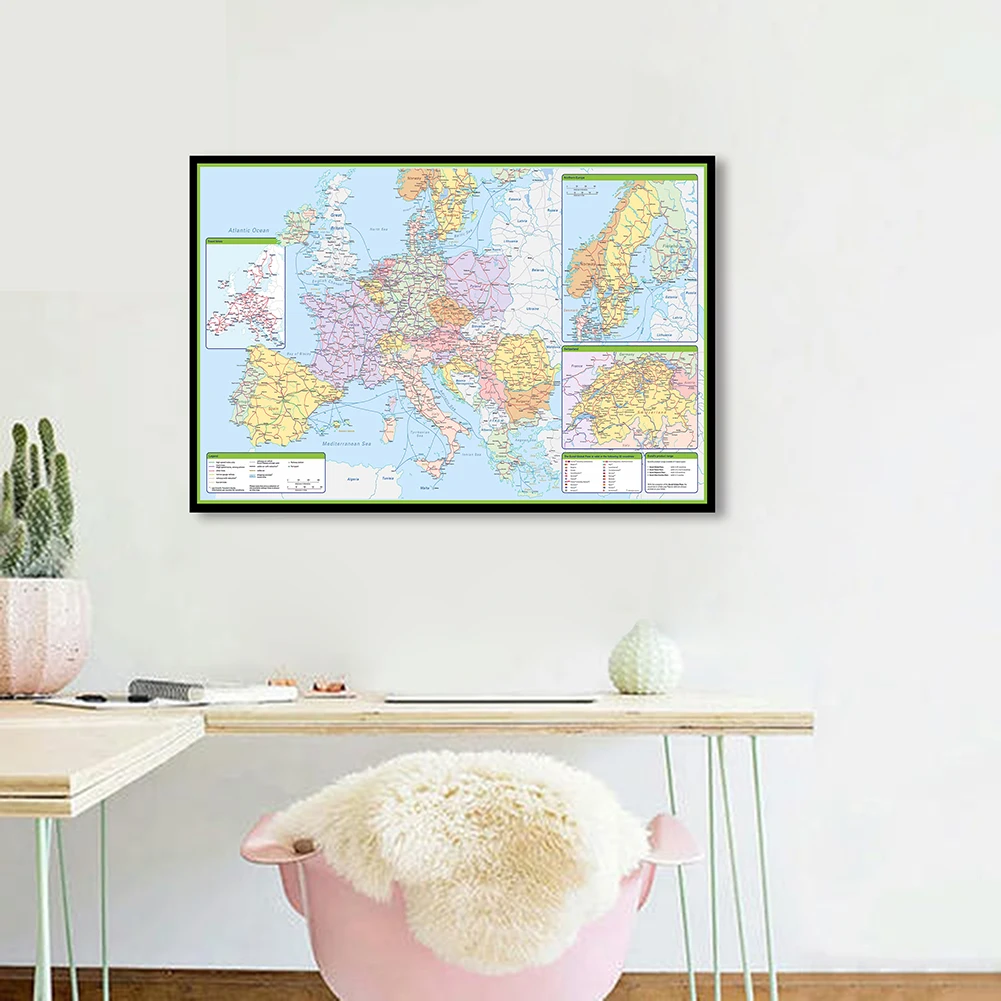 59*42 см политическая карта Европы с деталями, настенный художественный плакат, декоративная картина на холсте, школьные принадлежности, классный домашний декор