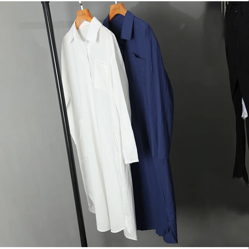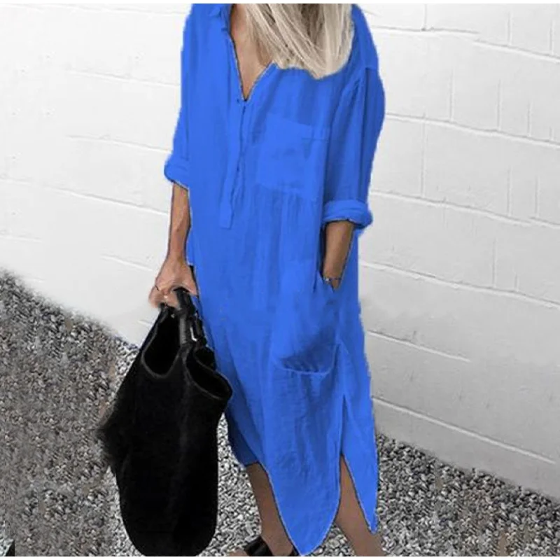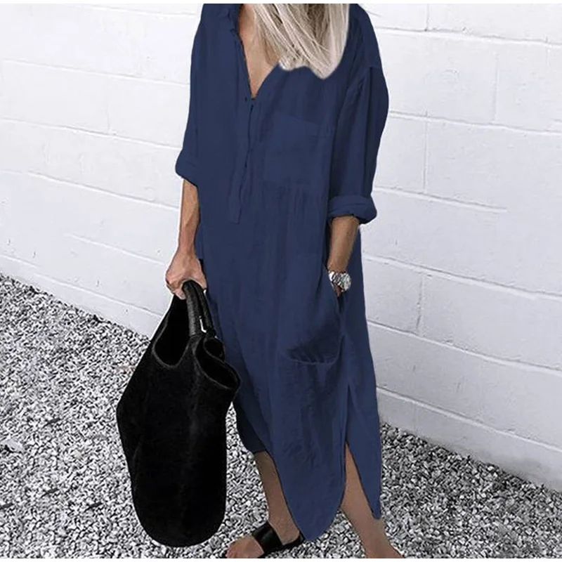 Женская однотонная повседневная обувь миди платье с длинными рукавами и отложным воротником и со сшитыми боками Разделение асимметричные платья стиле; Женская летняя обувь; Простые Стиль размера плюс 5xl