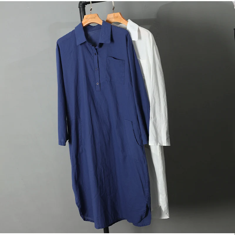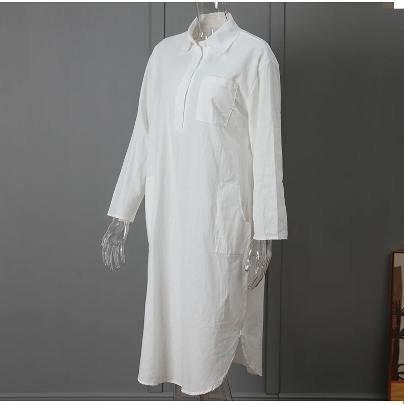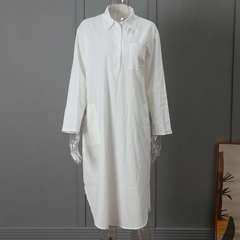 Женское платье-рубашка с длинным рукавом, однотонные льняные длинны...