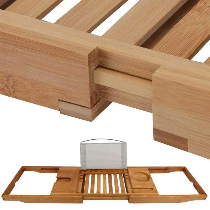 1. Телескопическая бамбуковая стойка для ванны для портативного хранения стеклянного мыла и геля для душа