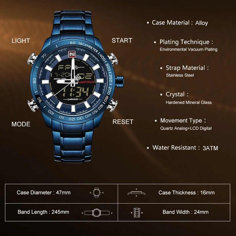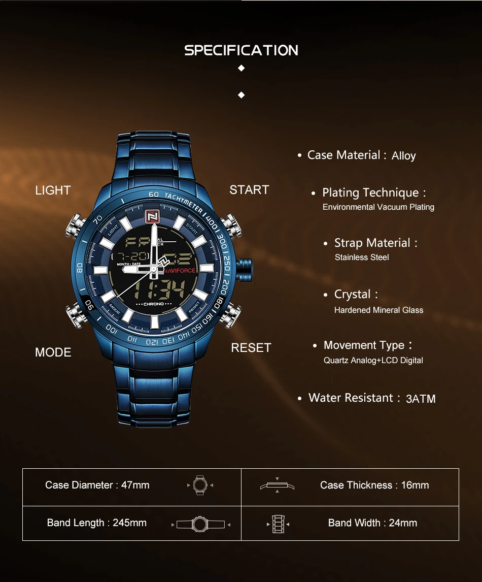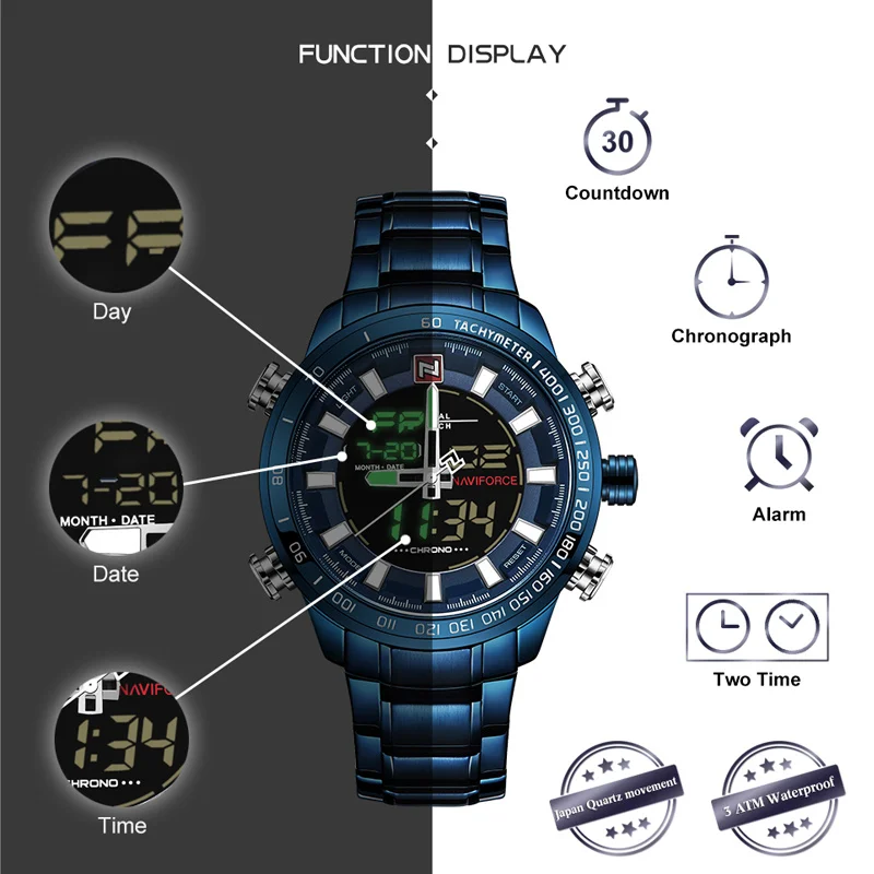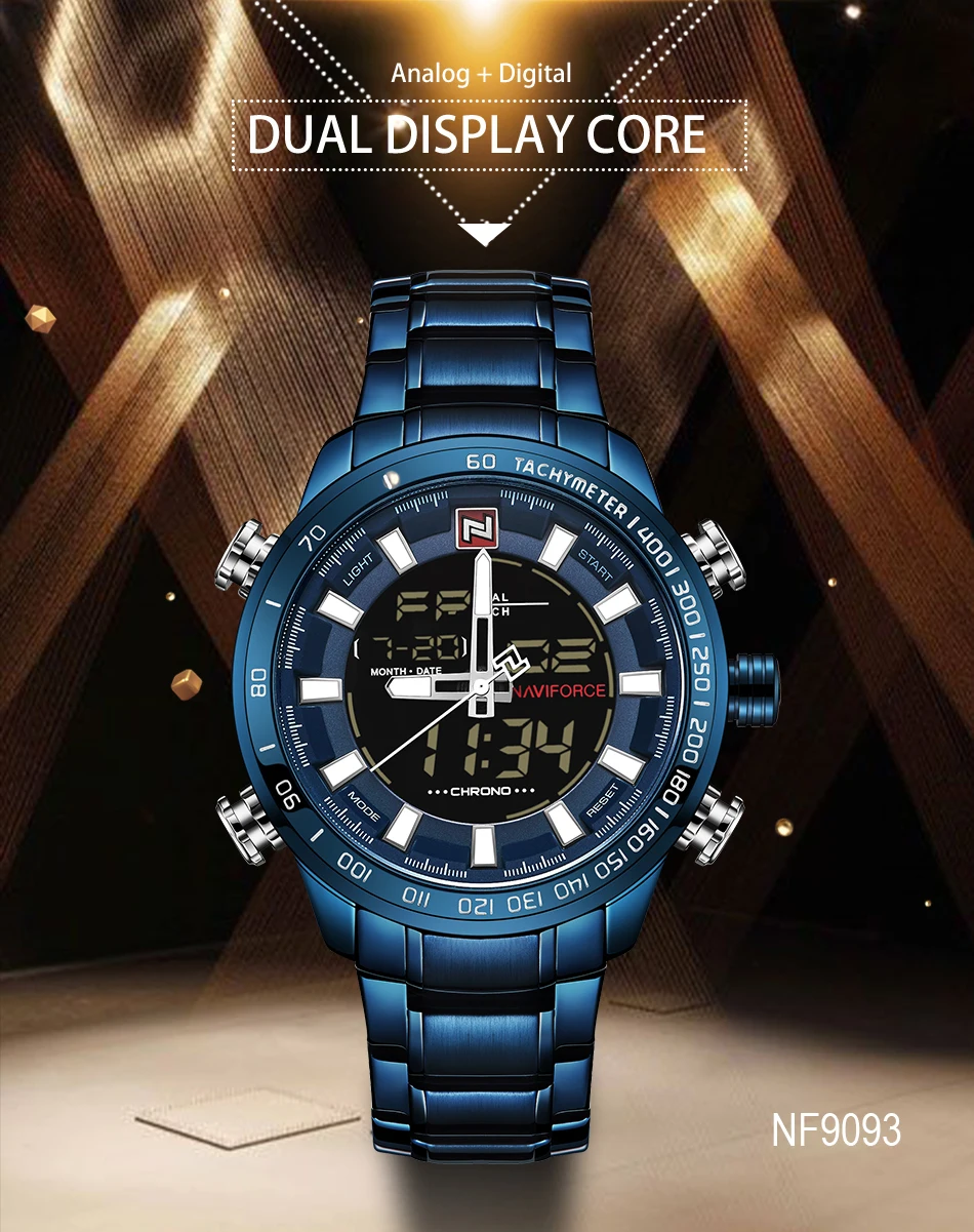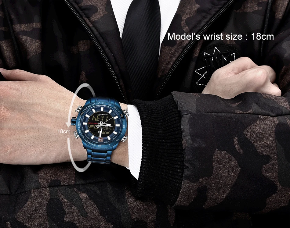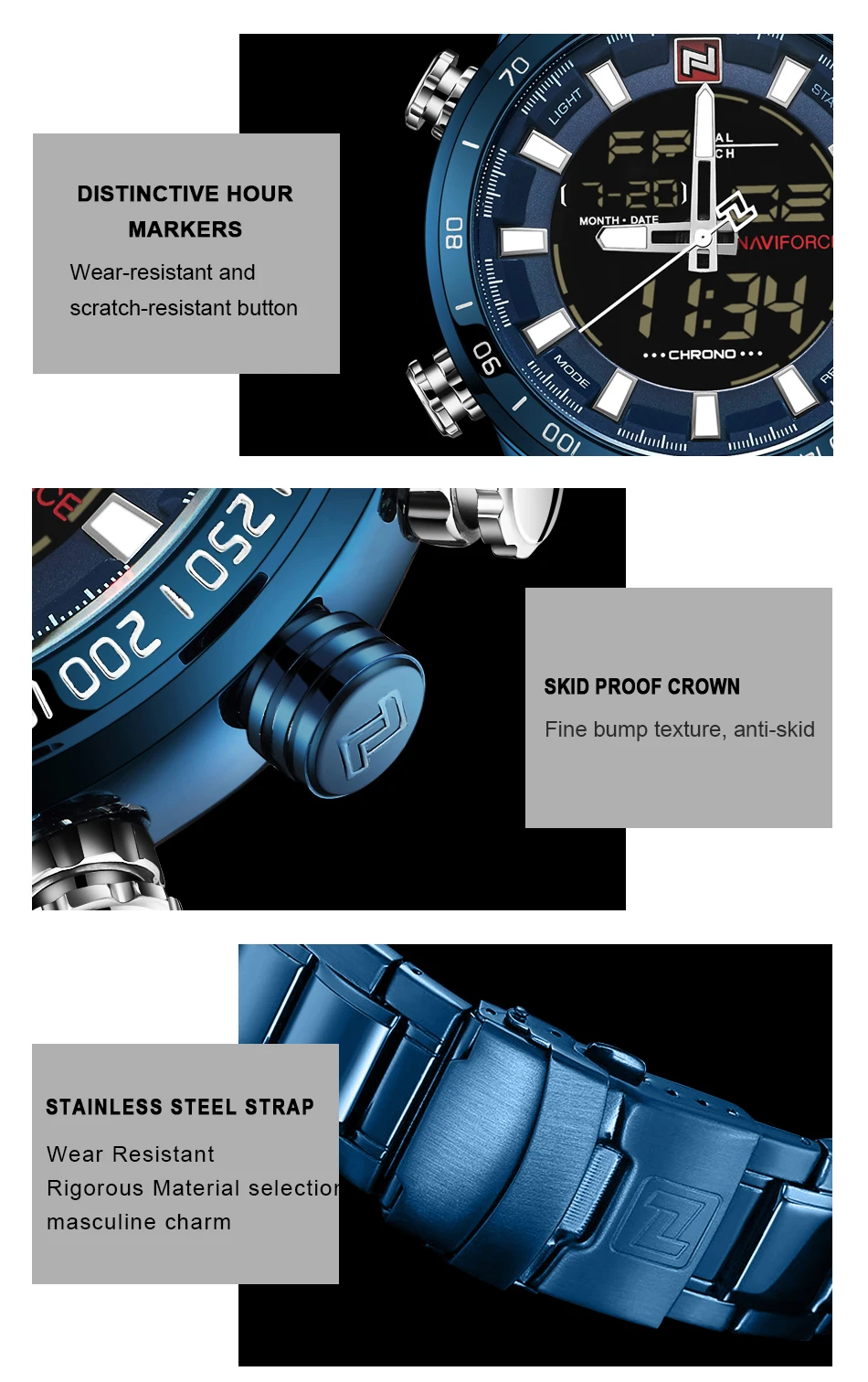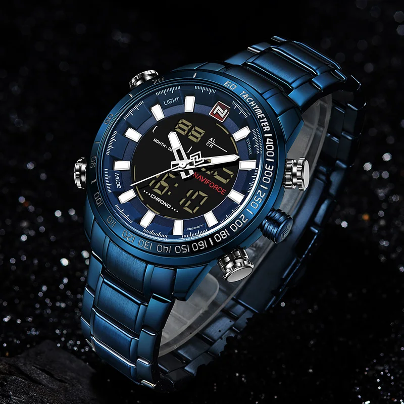 Часы NAVIFORCE мужские, полностью стальные, кварцевые, цифровые, во...