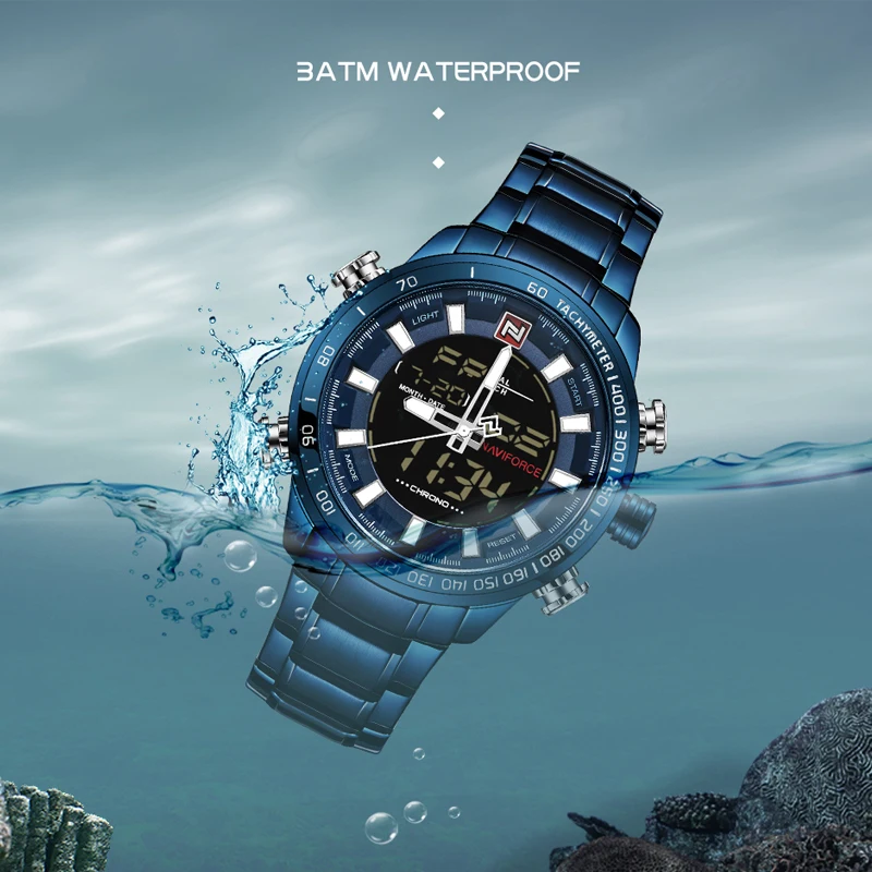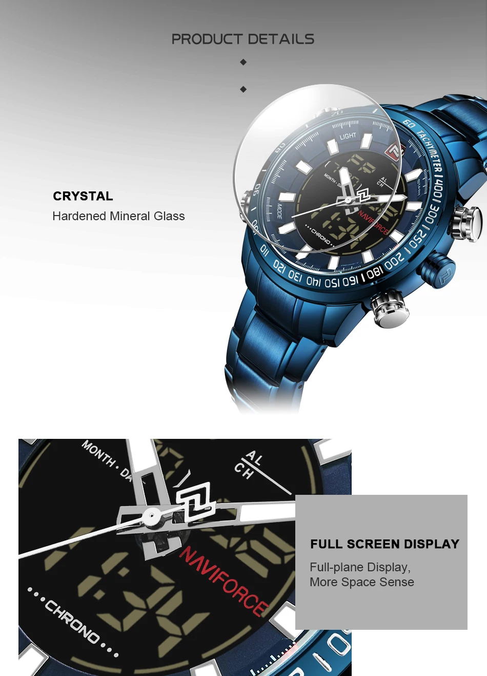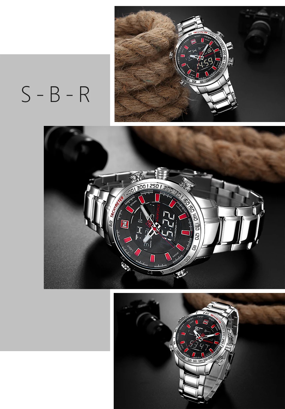 Часы наручные NAVIFORCE Мужские кварцевые, брендовые Роскошные повседневные деловые светодиодные цифровые водонепроницаемые из нержавеющей стали, с автоматической датой