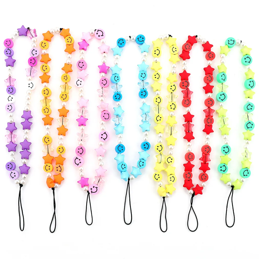 2021 новые яркие бусины "Улыбка", цепочка с ремешком, шнур для мобильный телефон, цепочка с защитой от потери для женщин, аксессуары для мобильных телефонов