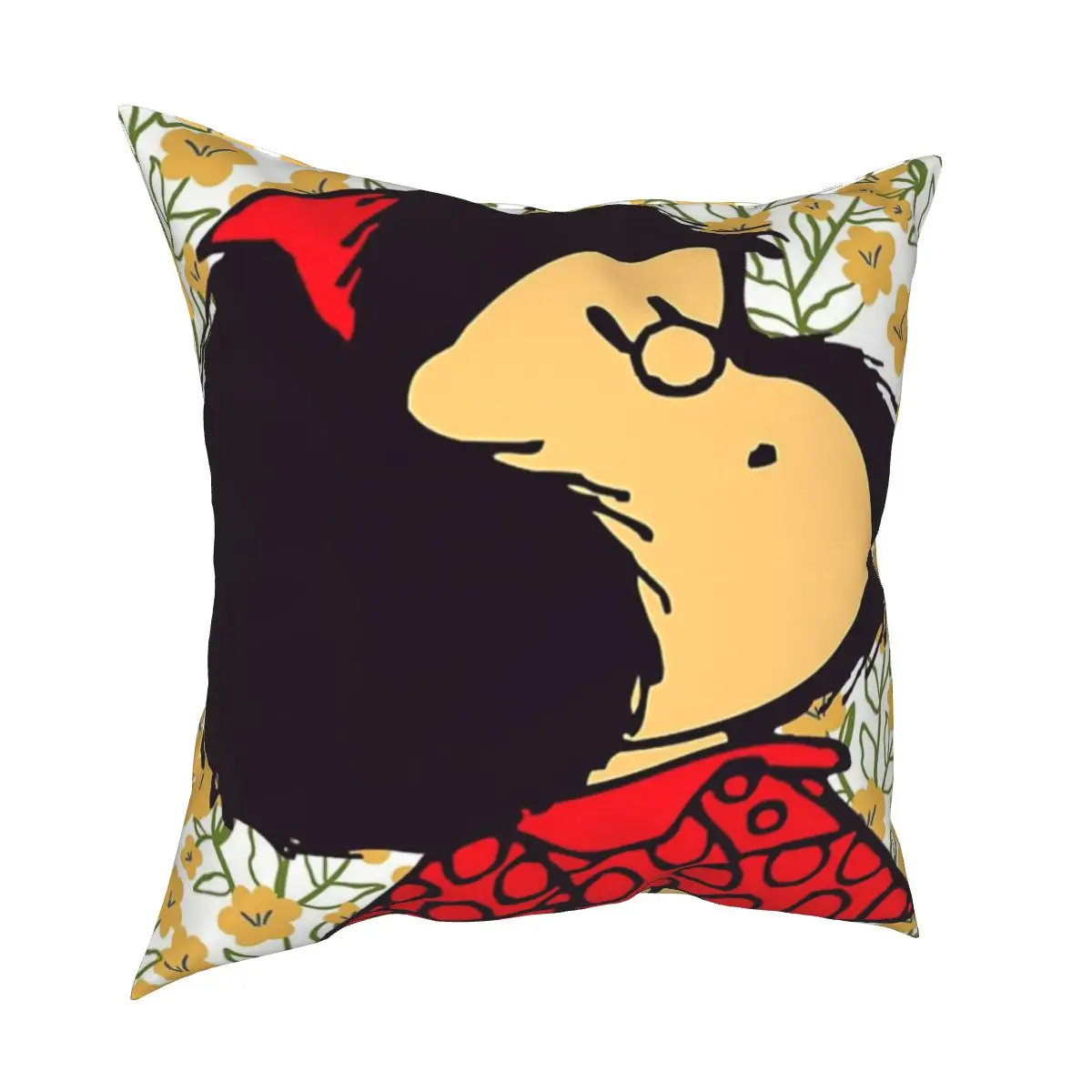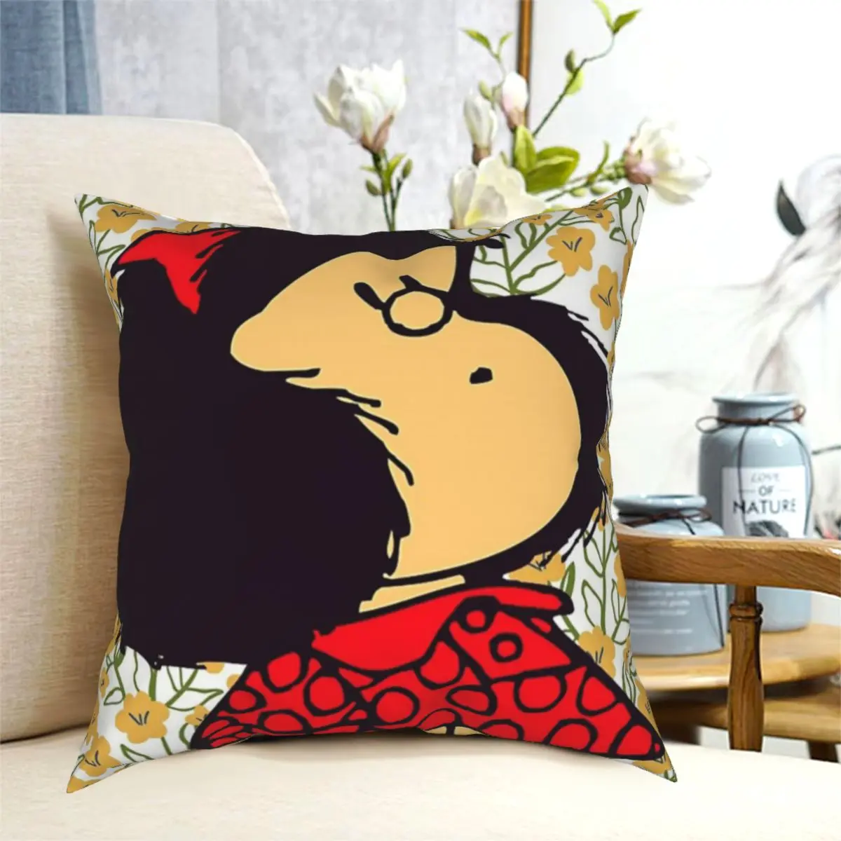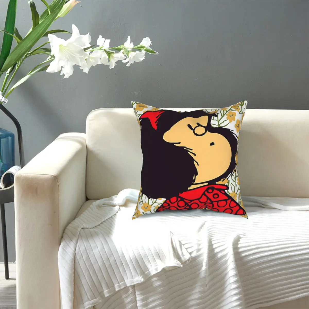 Квадратная подушка Mafalda с цветами, милый мультяшный чехол для подушки, модный декоративный чехол для подушки, чехол для сиденья 45*45 см