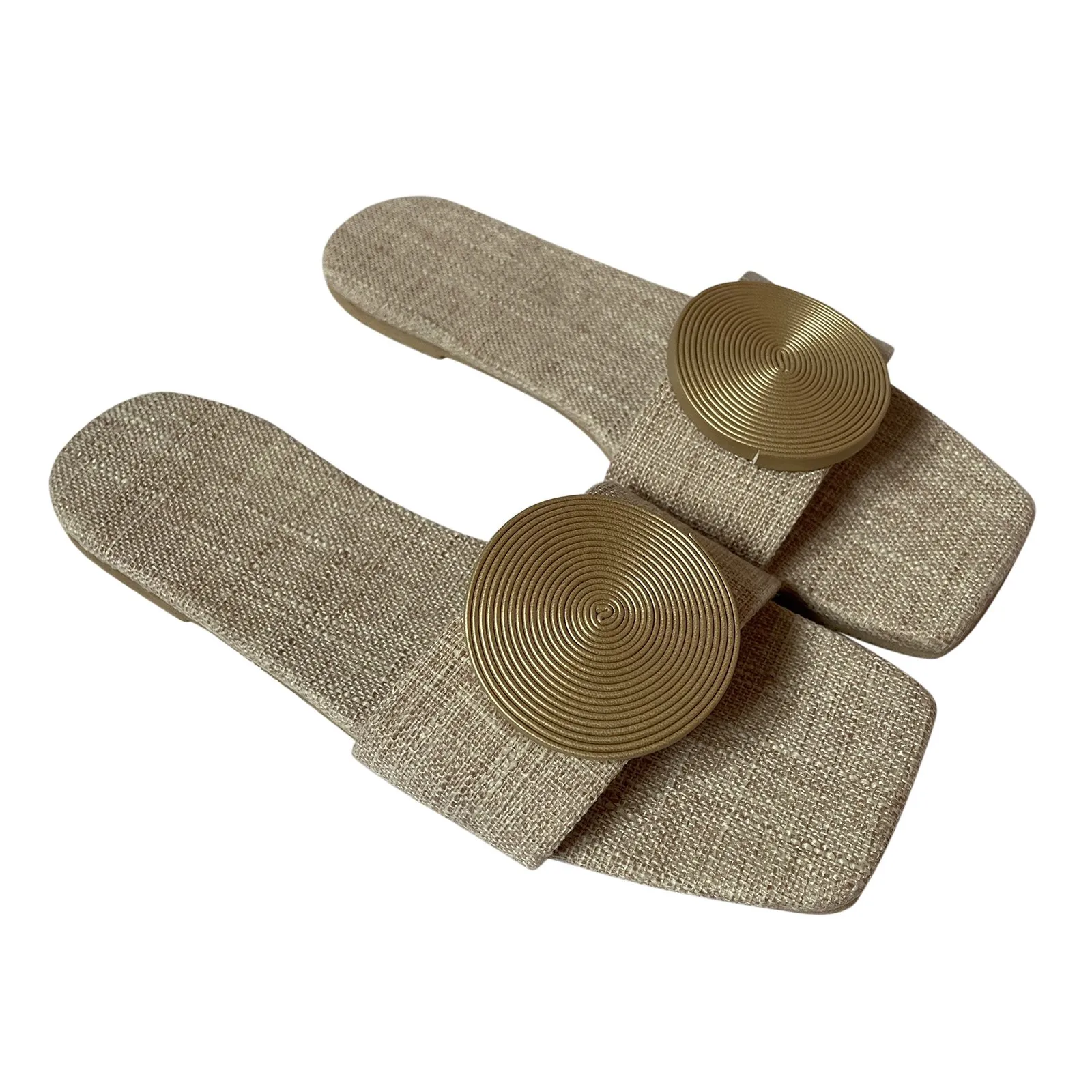 Шлепанцы женские с квадратным носком, без застежки, сандалии на плоской подошве, пляжные тапочки, дышащие сандалии с открытым носком, лето