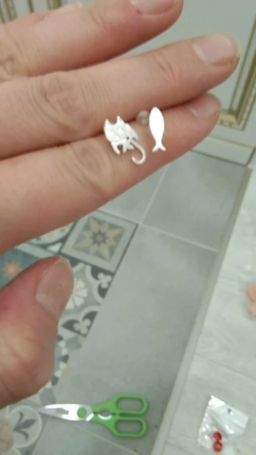 Серьги-гвоздики женские ассиметричные, в виде кошек и рыбок