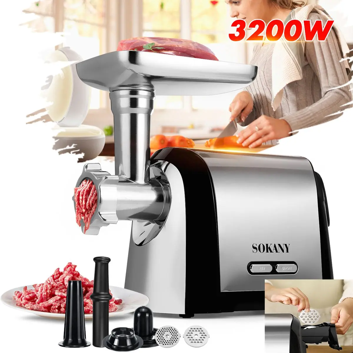 Электрические мясорубки 3200 Вт, миксер для пищевых продуктов, блендер, бытовая техника из нержавеющей стали, наполнитель для приготовления сосисок, тяжелый кухонный комбайн