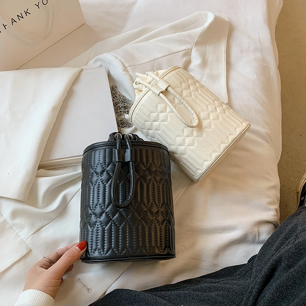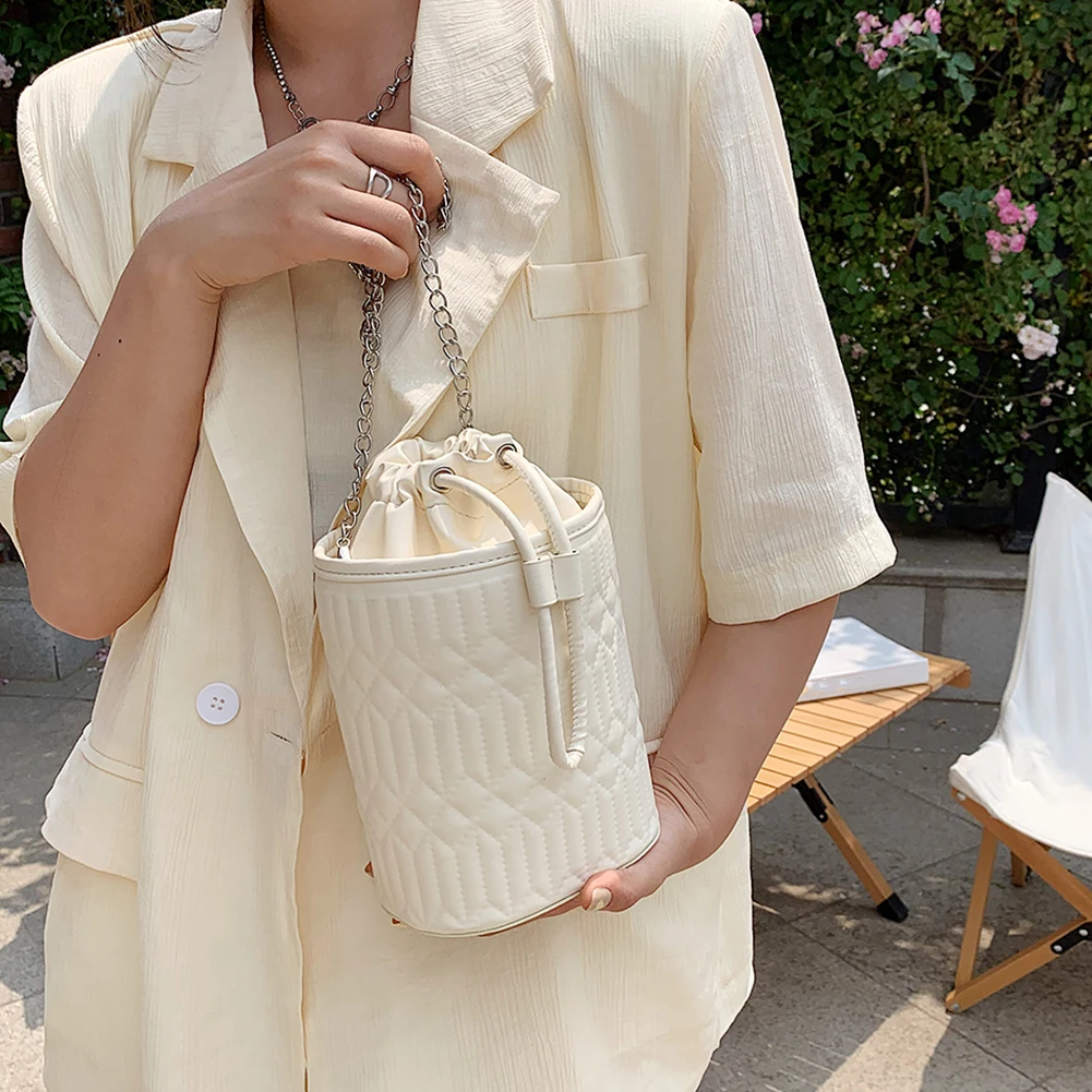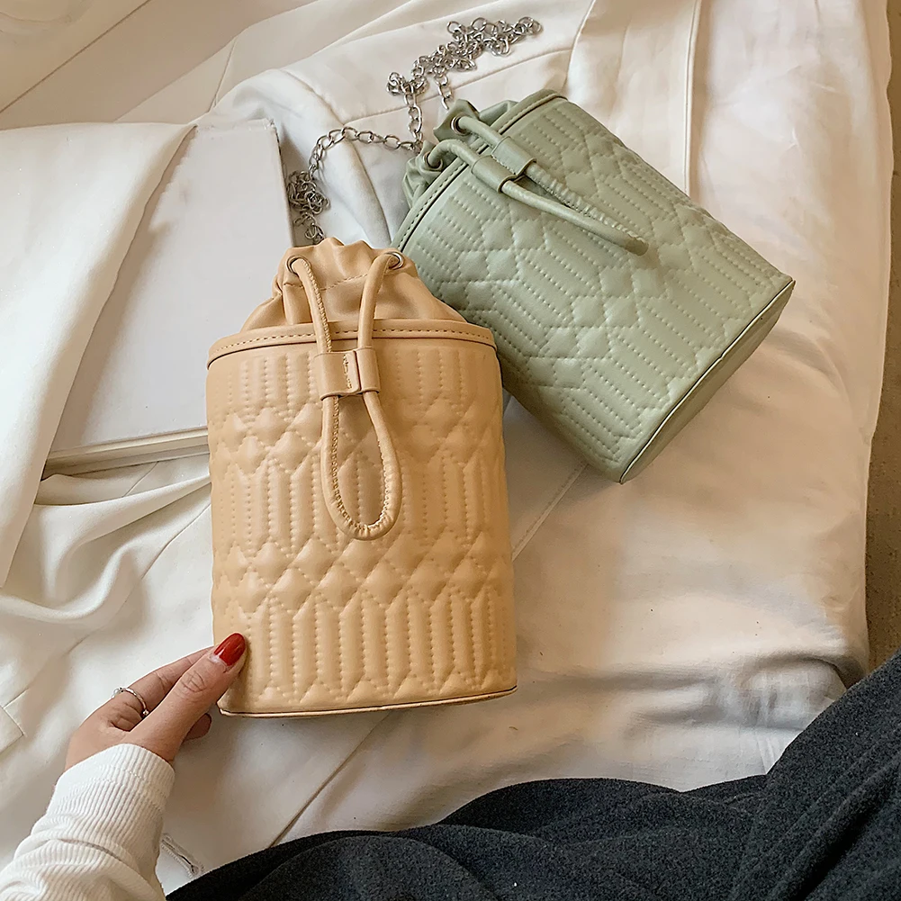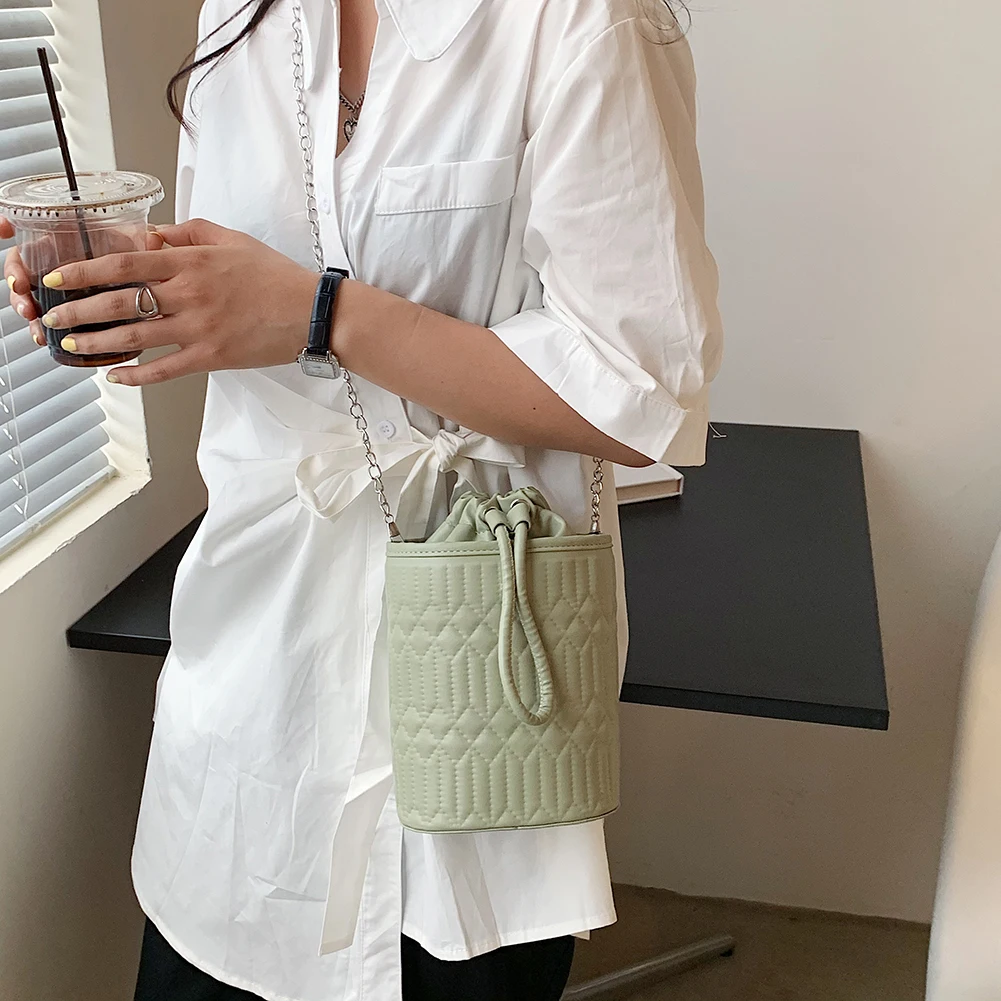 Модная сумка-мешок на шнурке с тиснением в виде цилиндра, сумки на плечо, повседневная женская сумка-мессенджер через плечо, однотонные мини-сумки на цепочке