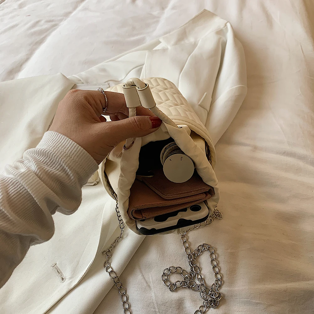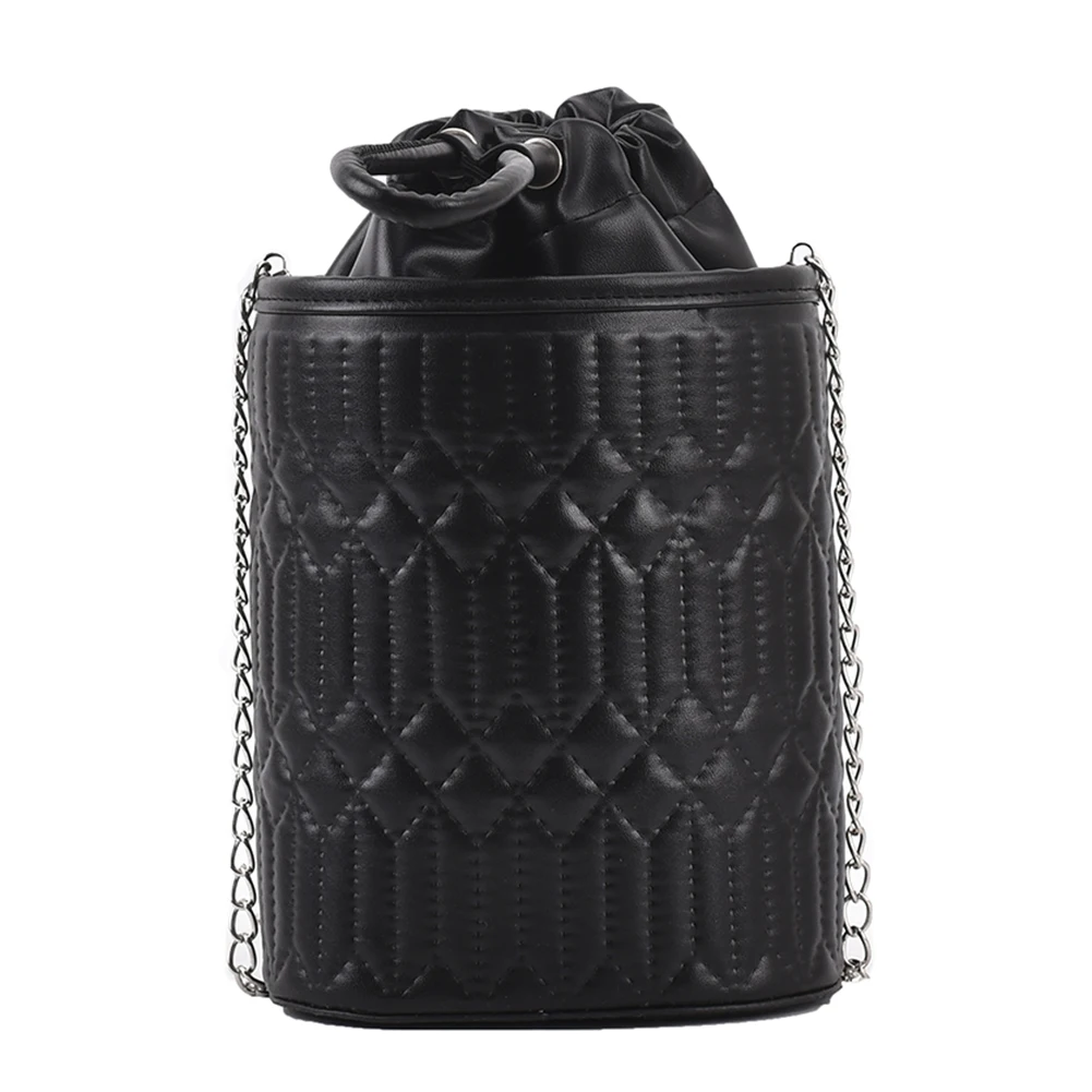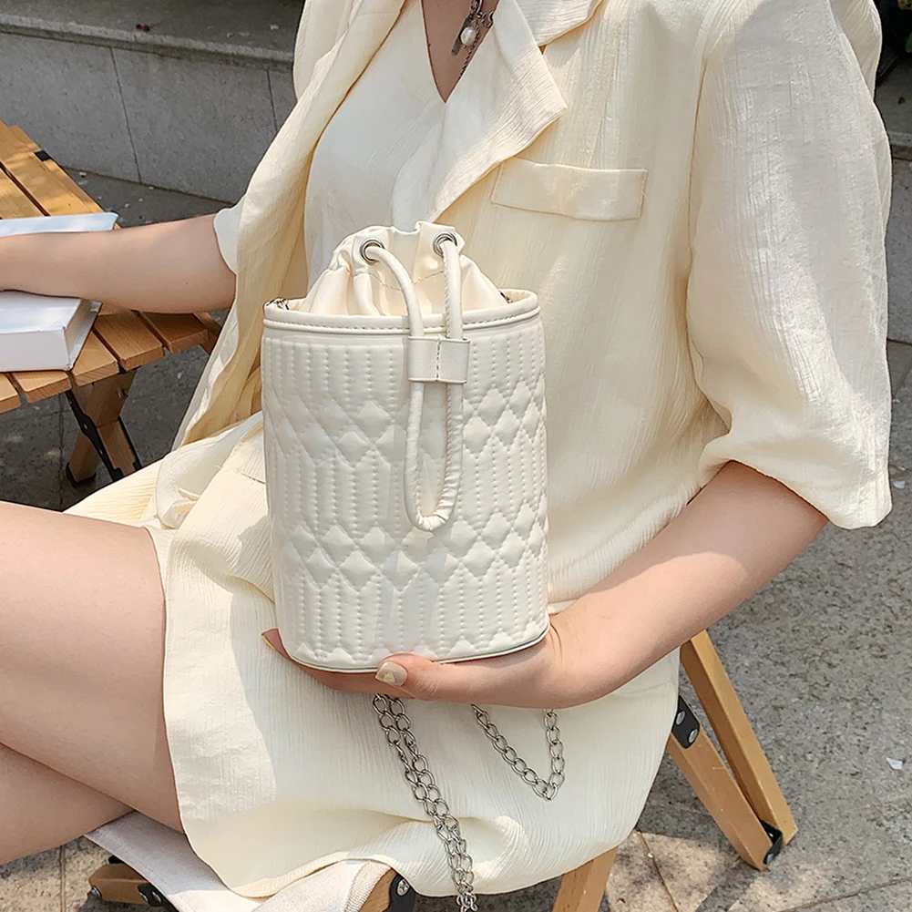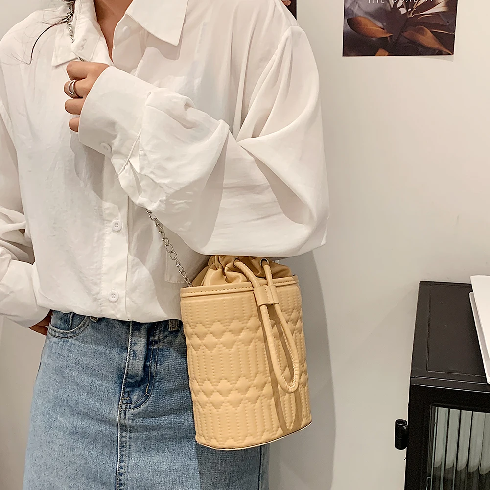 Модная женская цилиндрическая сумка-мессенджер с тиснением на шнурке через плечо, повседневная женская однотонная мини-сумочка с цепочкой