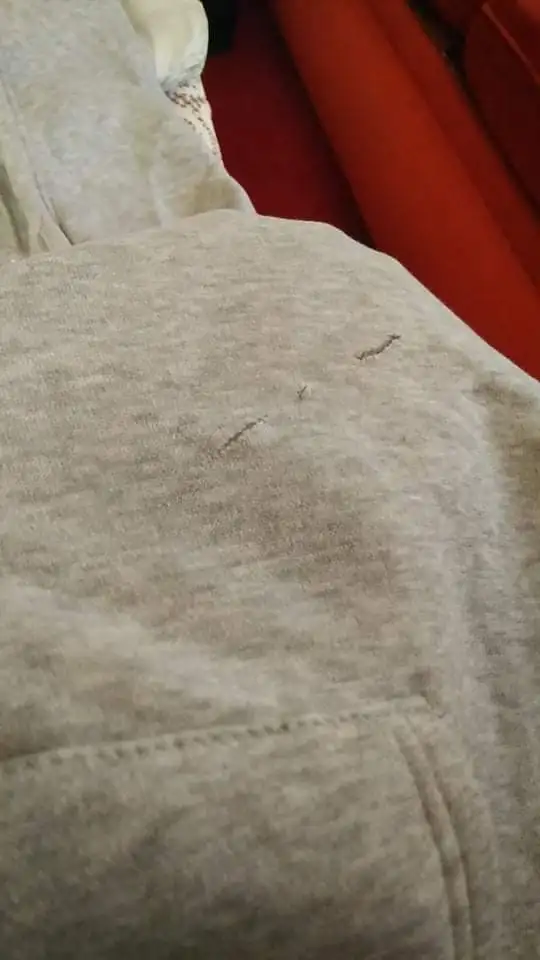 Очень быстрая доставка в Сербию (меньше месяца). Я 95 кг, 1,85 м и 3xl в порядке. Проблема в том, что (как вы можете видеть на фотографиях) на передней части толстовки. Кажется, что вырезанный или что-то похожее, чуть выше среднего кармана. Это причина для 1 *, кроме того, это нормально.