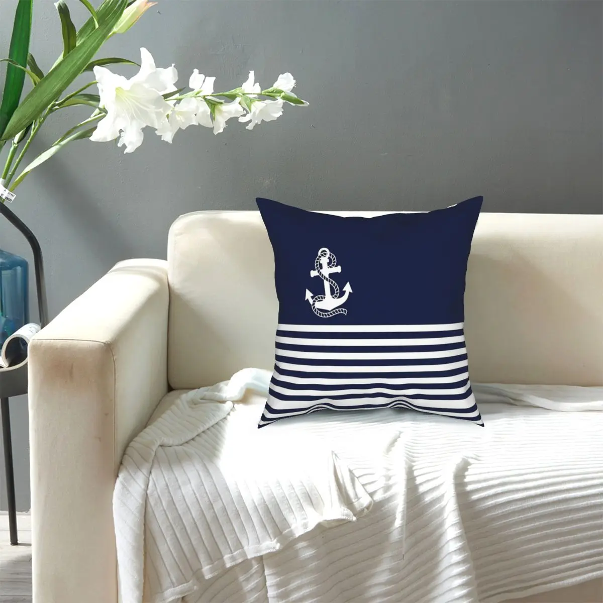 Морские темно-синие полосы и белый якорь наволочка для подушки Чехол для подушки потрясающий Декор Наволочка для подушки Чехол для автомобиля 18'