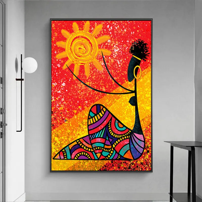 Холст с изображением женщины и солнца, настенная живопись, абстрактная фигурка, плакат для африканской женщины, печать картин для гостиной, Декор
