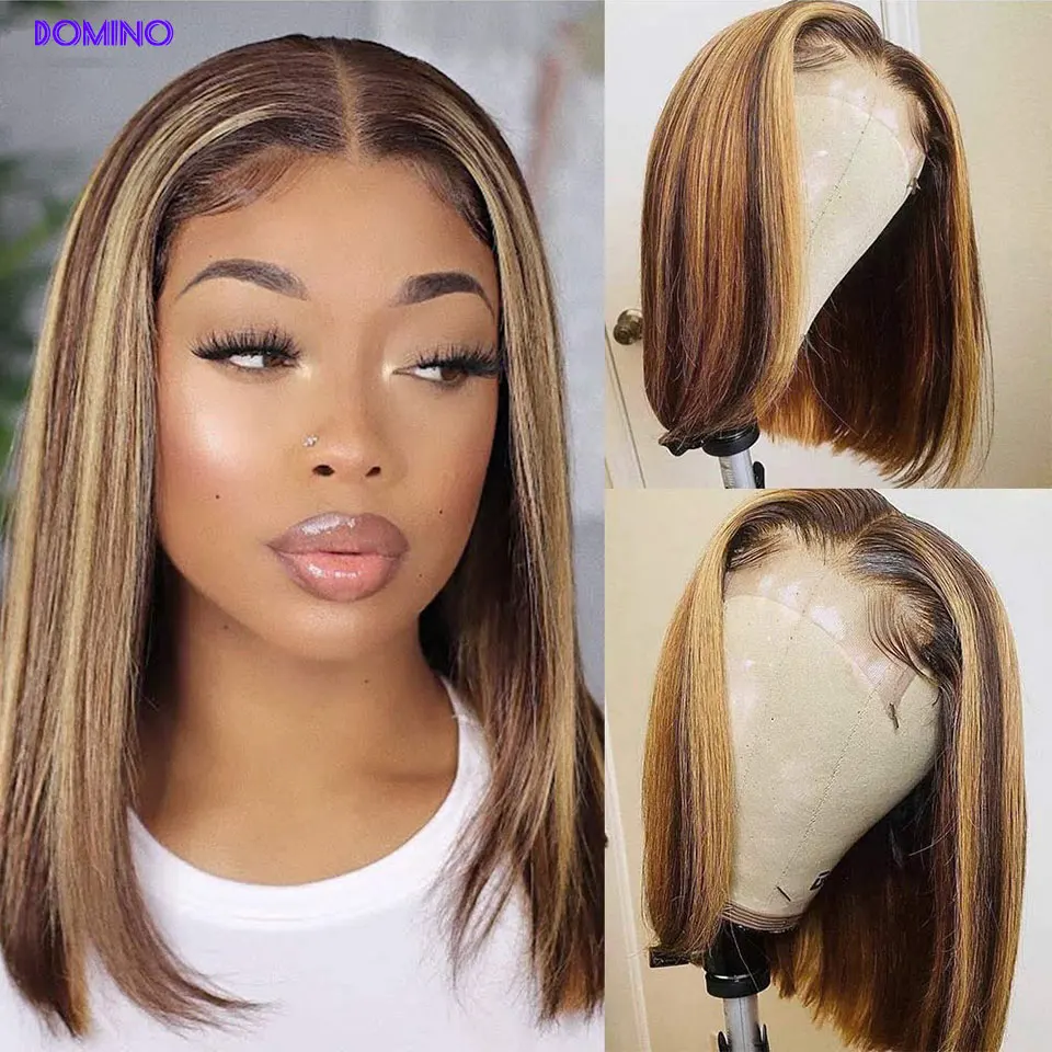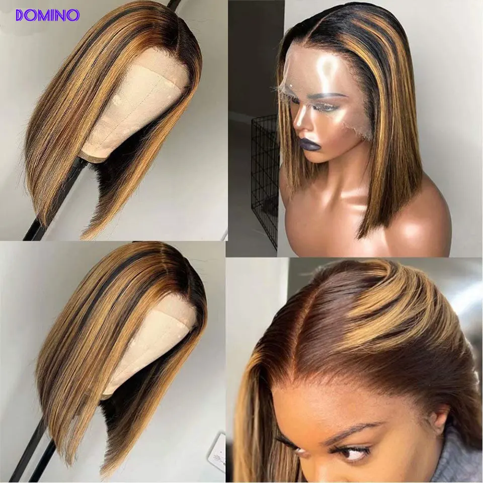 Парик Боб, прямой, медовый блонд, с эффектом омбре, 13x4, 4x, 4, парик из натуральных бразильских волос