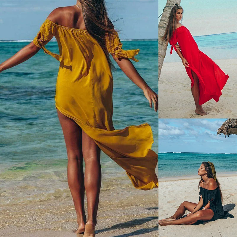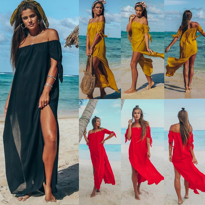 Hirigin 2021, женское длинное прозрачное летнее платье макси, пляжные длинные платья с разрезом, бикини с открытыми плечами, накидка, купальник, пляжная одежда
