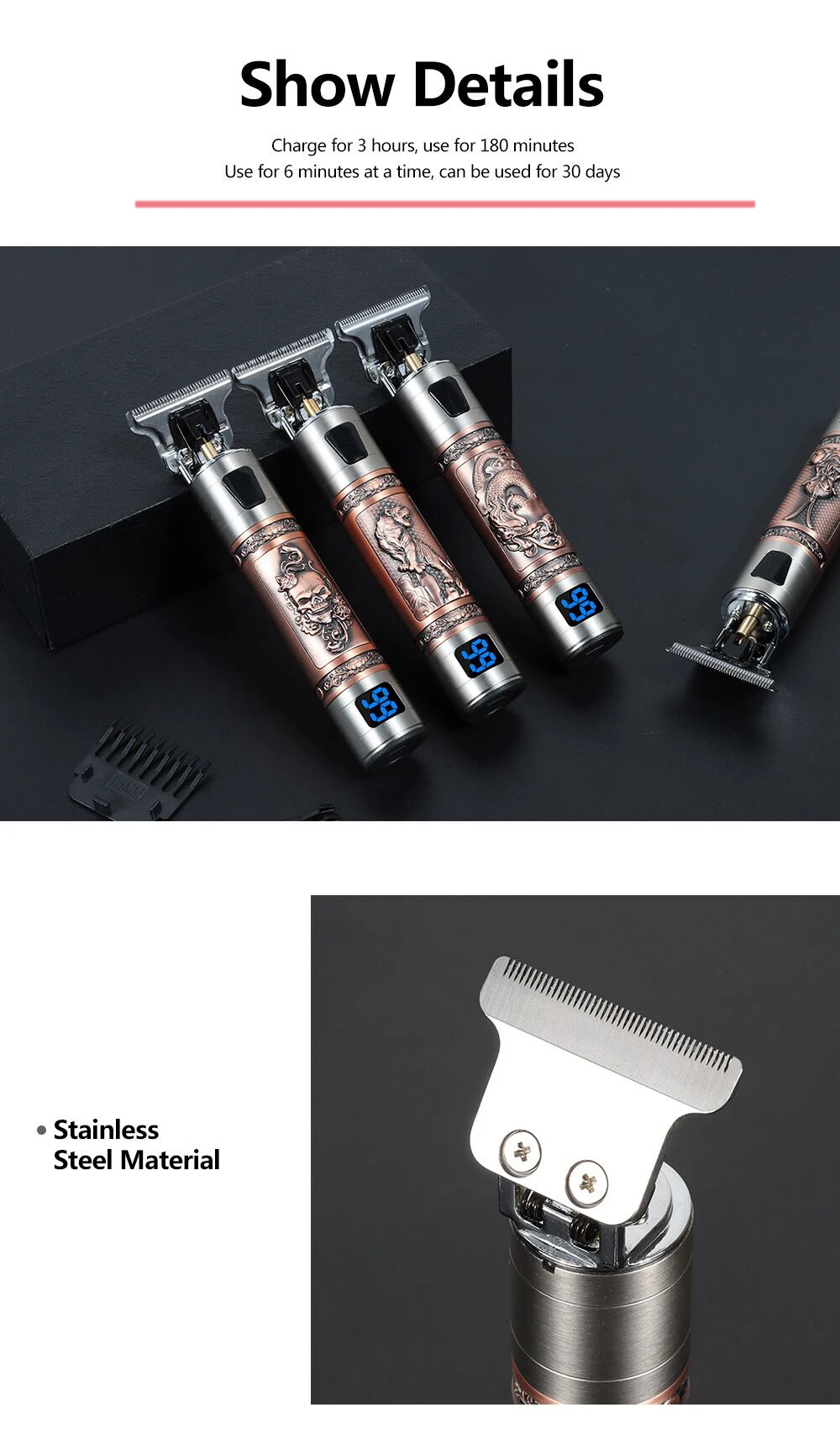 Машинка для стрижки волос T9 Мужская электрическая, USB-триммер для бритья, перезаряжаемый профессиональный, для бороды, 0 мм