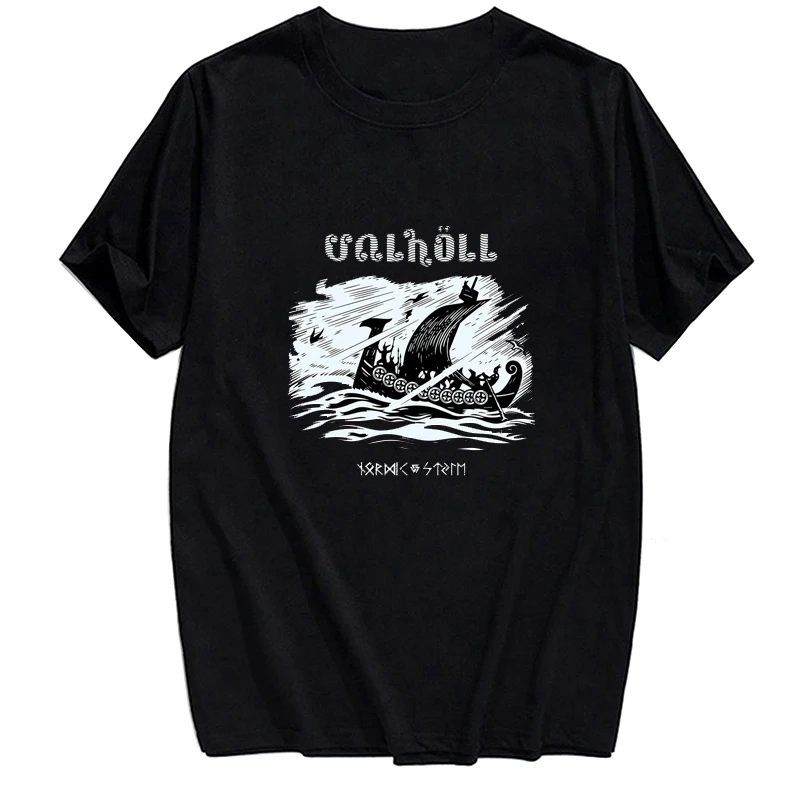 Футболка хлопковая в стиле викингов для мужчин и женщин, модная повседневная смешная рубашка в стиле Харадзюку, с символами викингов, черный цвет, на лето