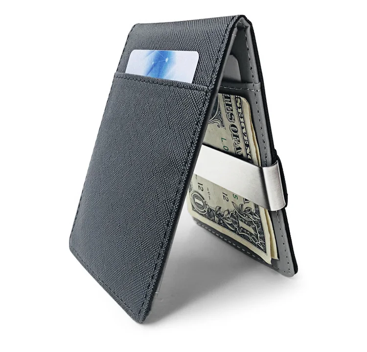 Новинка, модный однотонный мужской тонкий двойного сложения, кожаный кошелек с металлическим зажимом, Женский кошелек для удостоверения личности, кредитной карты, кошелек, держатель для наличных