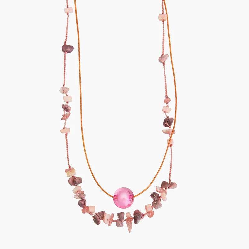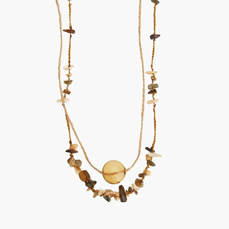 Ожерелье ZA, 2 шт.компл., богемное ожерелье-цепочка с камнем естественный неправильной формы для женщин, розовое прозрачное ожерелье с подвеской в виде стеклянного шара