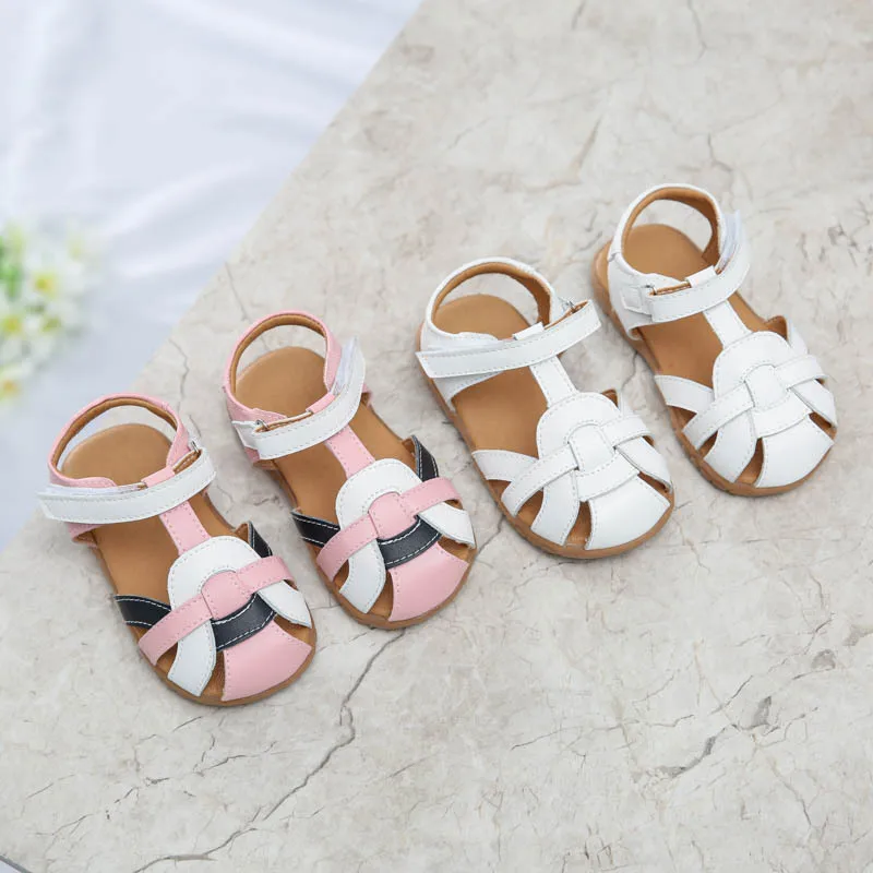 Детские сандалии из натуральной кожи, модная обувь принцессы, мягкая подошва, плоская подошва, пляжные туфли с вырезами, классические, лето 2022