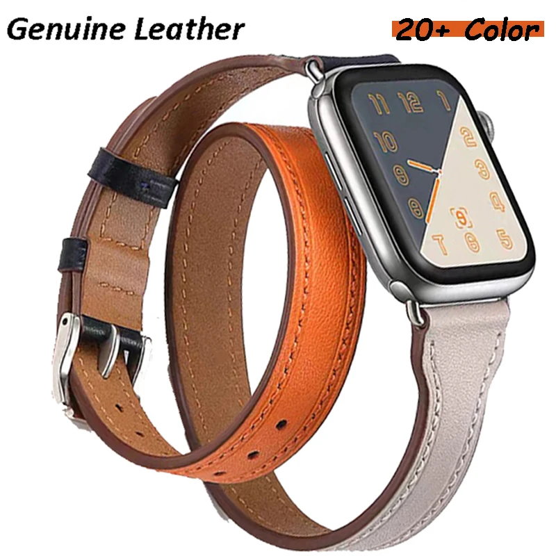 Ремешок кожаный для Apple Watch 42 мм 38 мм 44 мм 40 мм, браслет с двойной петлей для Iwatch 6 SE 5 4 3 4 из натуральной кожи
