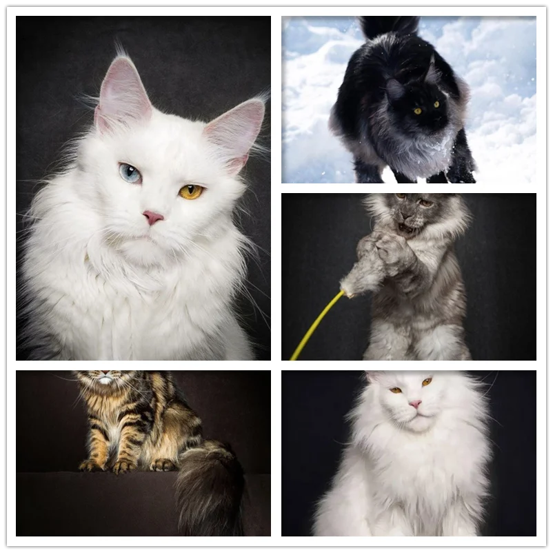 Алмазная 5d живопись сделай сам с изображением белого кота, вышивка из страз Мейн-енота, вышивка крестиком стразы, искусство, мозаика, украшение для дома