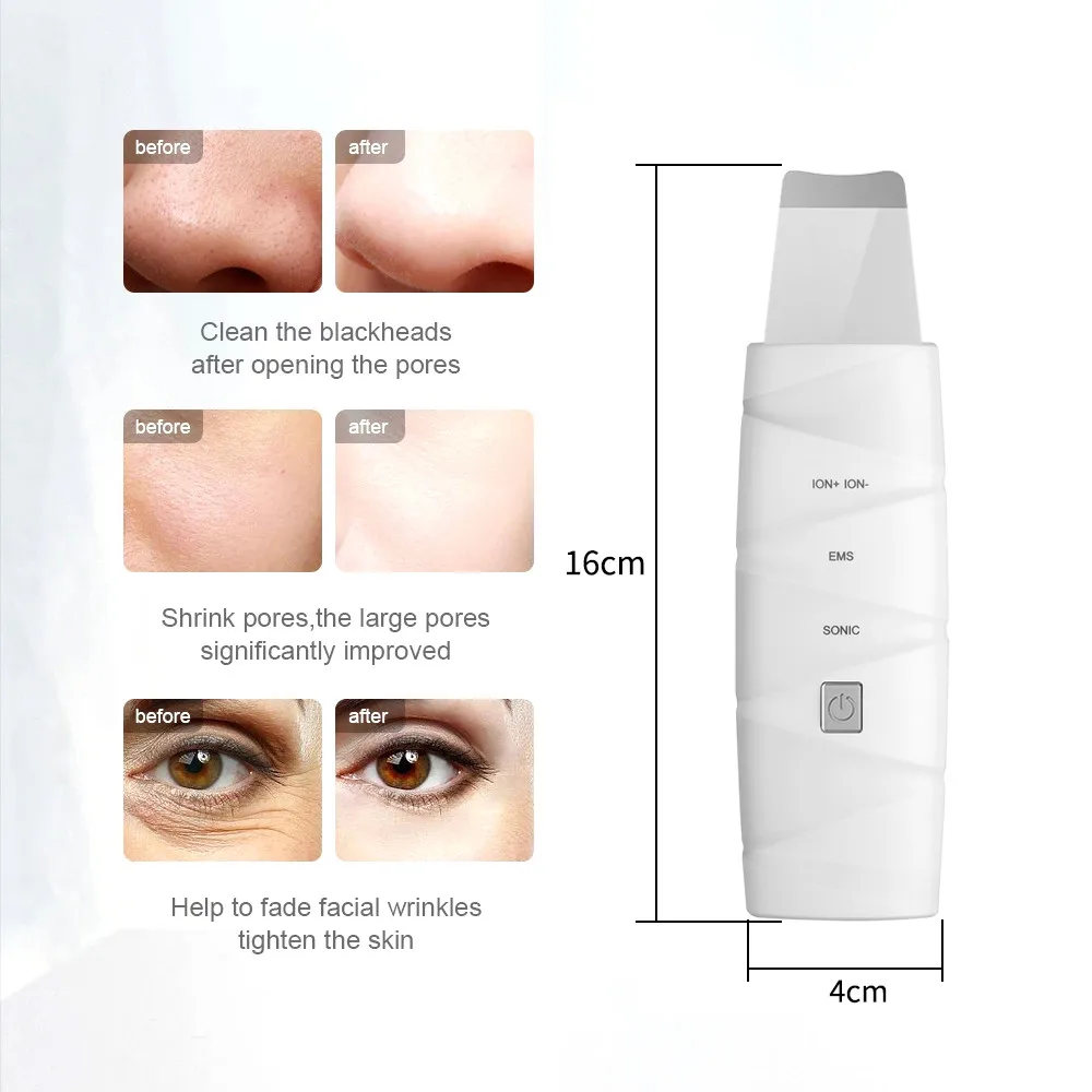 Новейшие ультразвуковые кожи скруббер Deep аппарат для чистки лица пилинг Лопата для глубокого очищения кожи лица Очиститель скраб для кожи лица Лифт машины