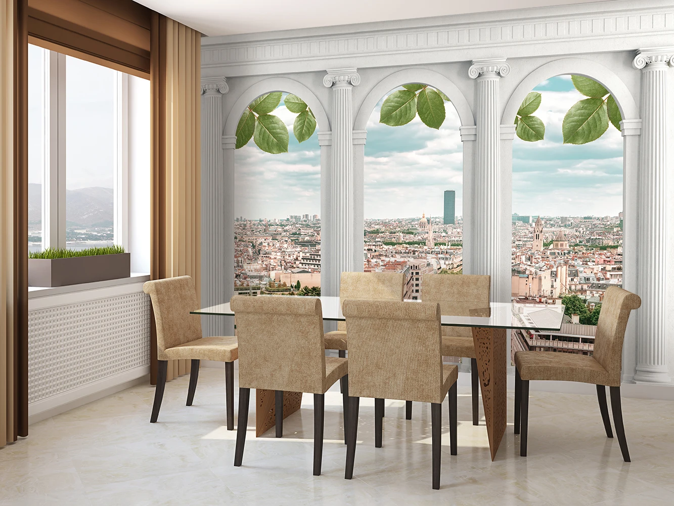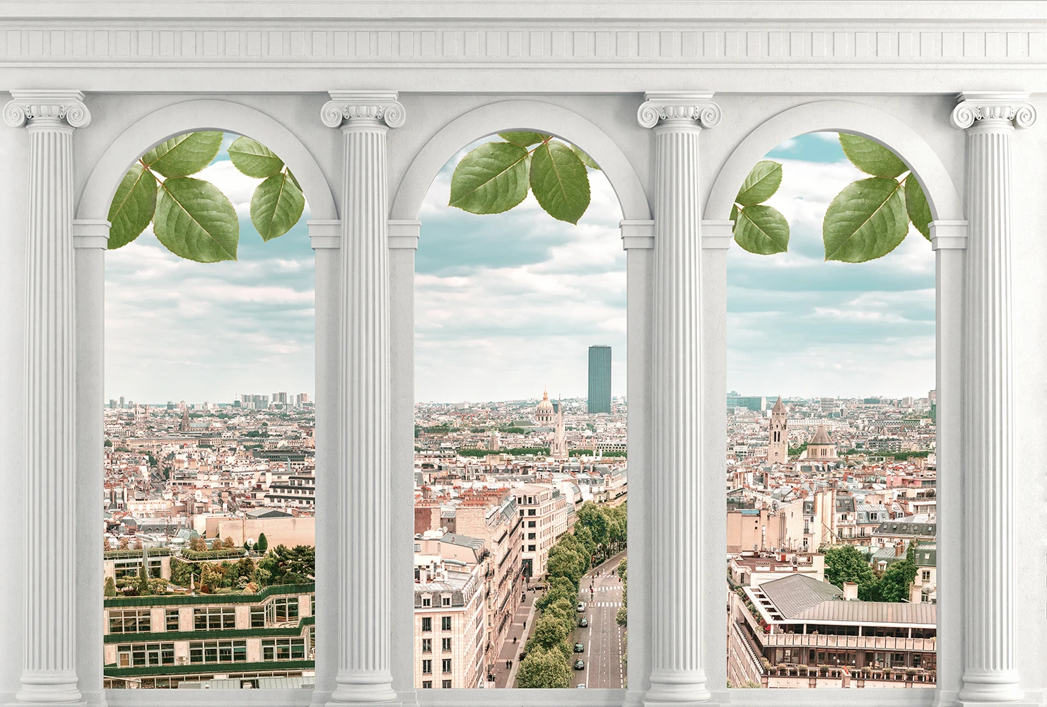 Фотообои категория Окна и балконы арт. P-018 Арочные окна с видом на город