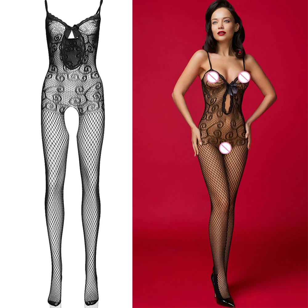 Женское сексуальное эротическое нижнее белье в сетку с открытым бюс...