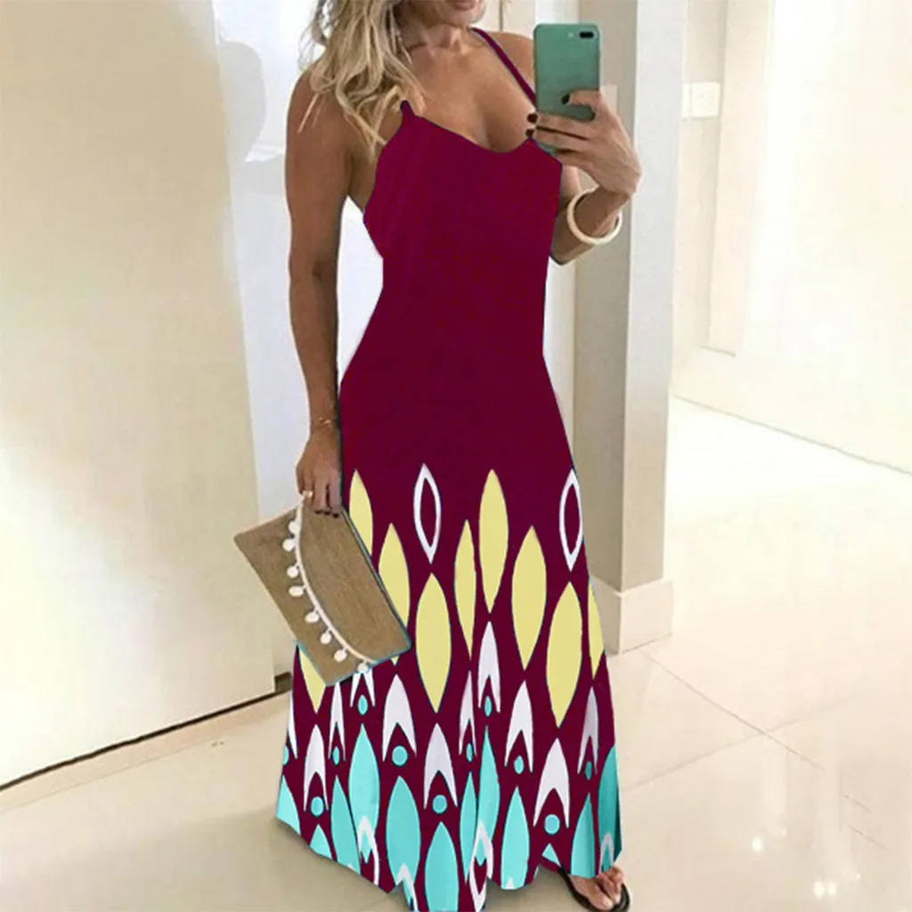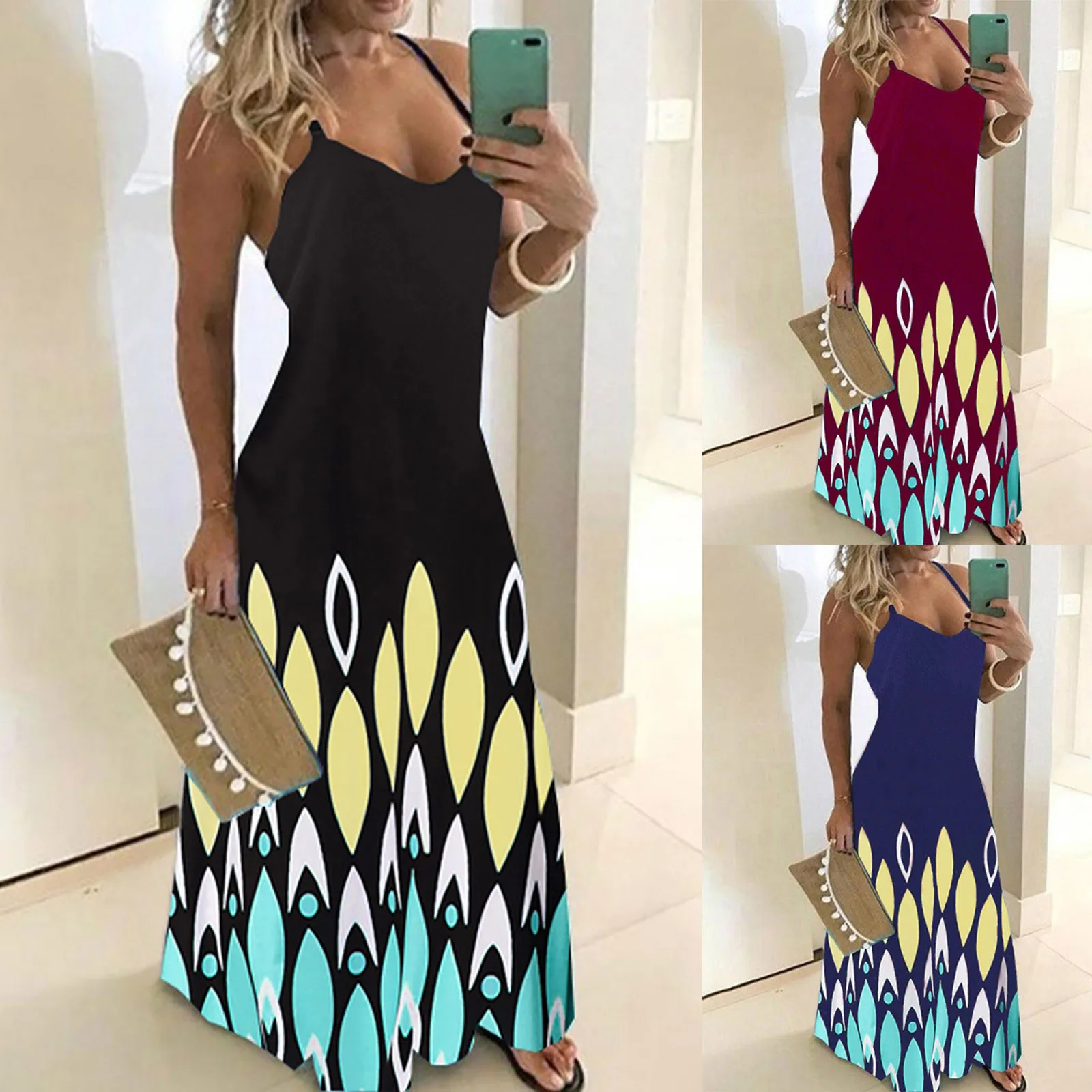 Женское летнее платье, 2021, размера плюс, элегантное женское вечернее платье на бретелях-спагетти, Модное Длинное Платье с подтяжками