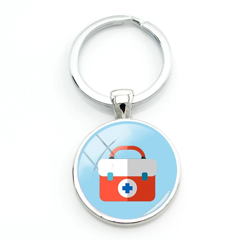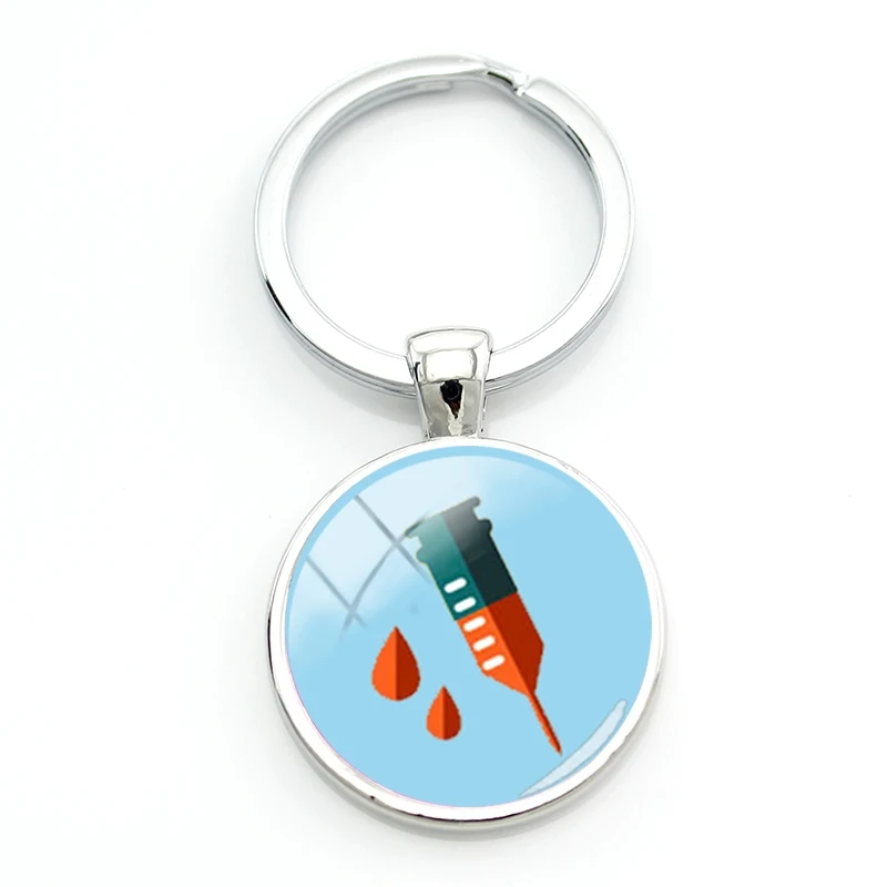TAFREE медицинские принадлежности изображения стеклянные брелки аптечка шприц термометр кольцо для ключей практичные ювелирные изделия для доктораИзображение продукта: