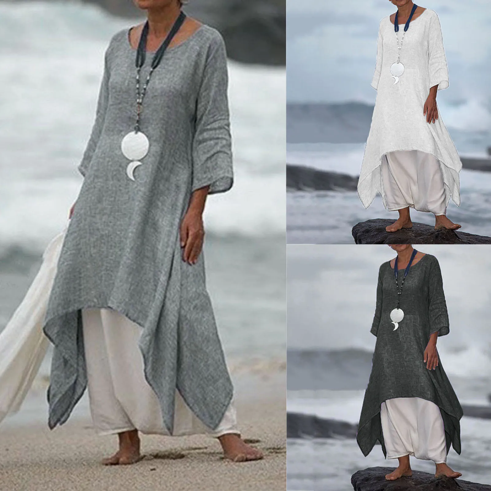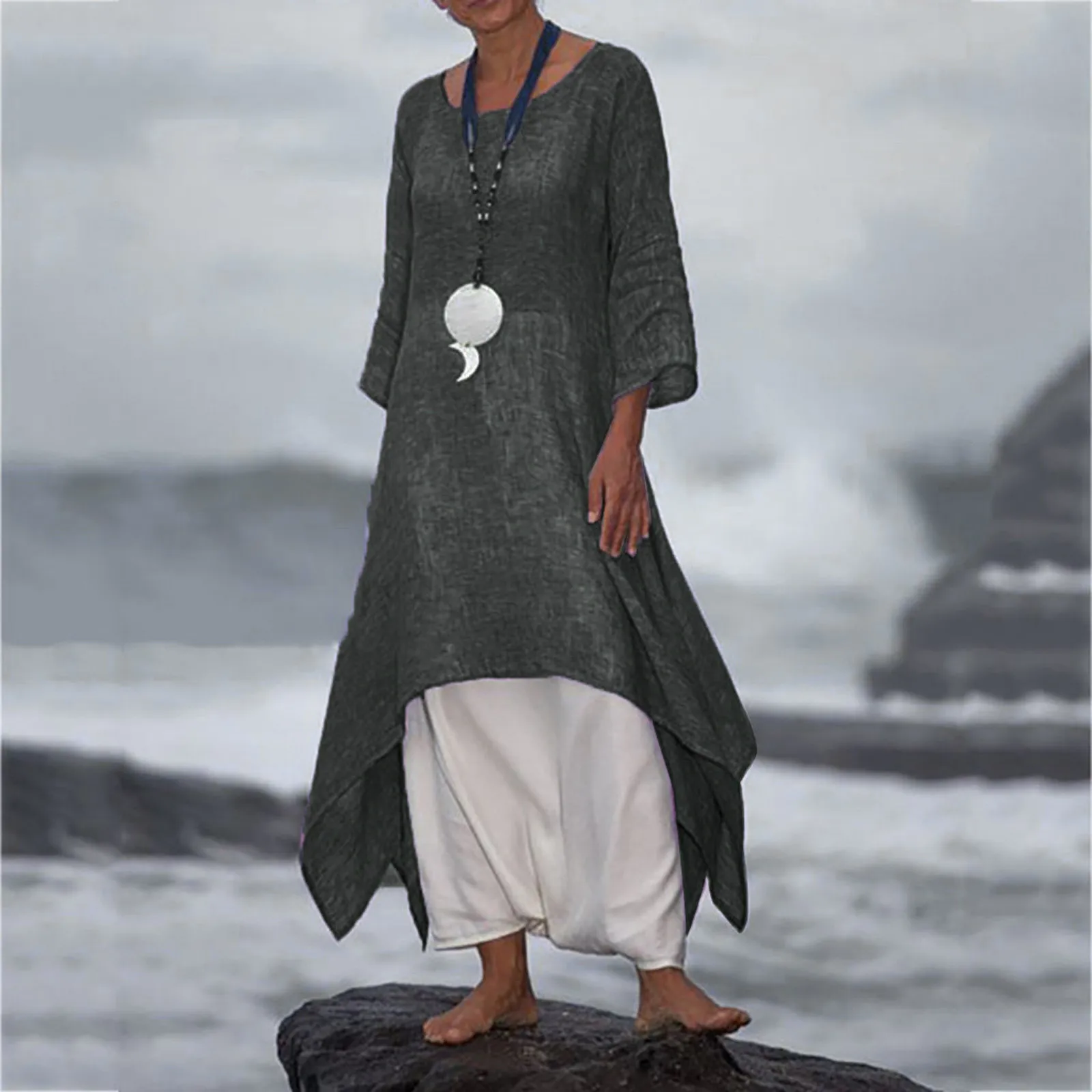 Принтованные женские летние платья 2021 в винтажном стиле, в стиле Бохо Женская Повседневная футболка с длинными рукавами и круглым вырезом без рукавов; Пляжная футболка длинное платье размера плюс пляжного отдыха призвание