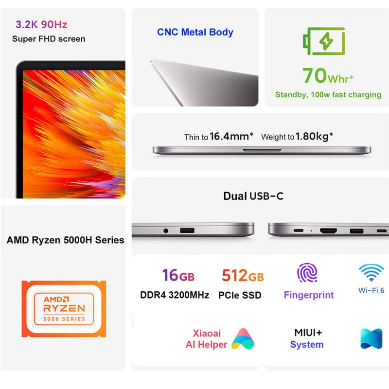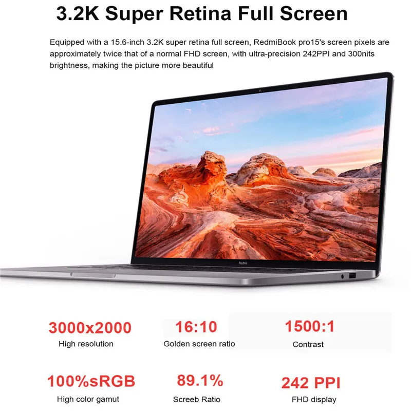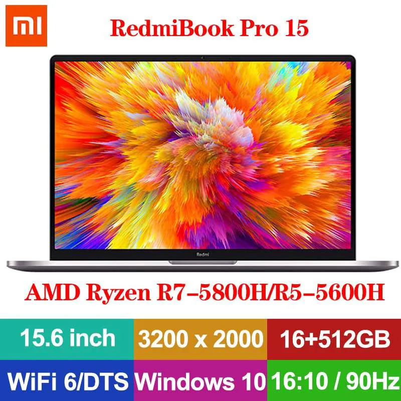 Ноутбук Xiaomi RedmiBook Pro 15, экран 15,6 дюйма, 3,2 K, частота обновления 90 Гц, процессор AMD Ryzen R7-5800HR5-5600H, 16 ГБ, 512 ГБ, Windows 10, WIFI, 6 шт.