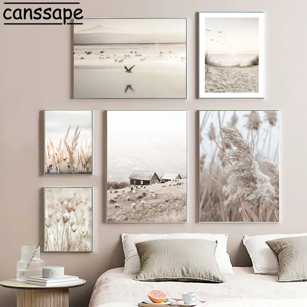 Пейзаж, настенные художественные картины, тростник, сено, печать на...