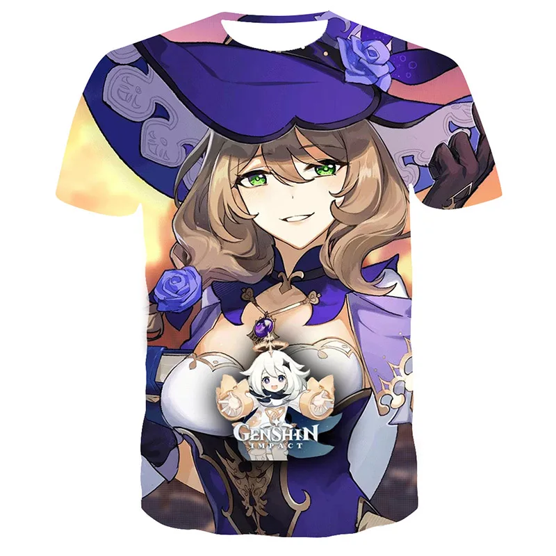 Футболка Мужскаяженская с коротким рукавом, Повседневный дышащий топ с 3D-принтом Аниме игры геншина, крутая стильная футболка для девочек-подростков, на лето