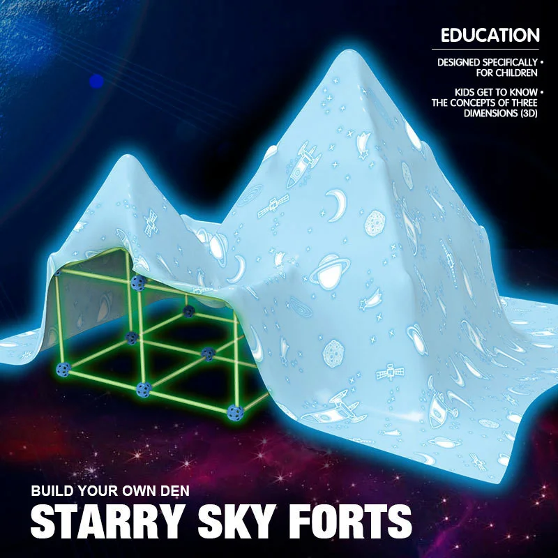 Набор для строительства палатки, форта, строительная игрушка, набор для детской хижины, светящийся в темноте, крепости, замки, туннели, самодельный игровой домик, подарок для детей