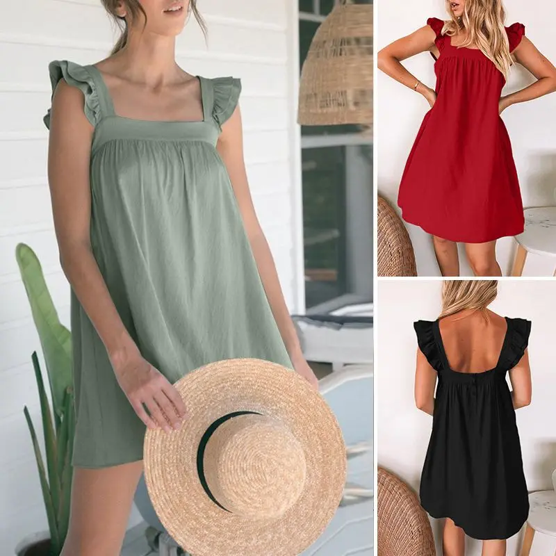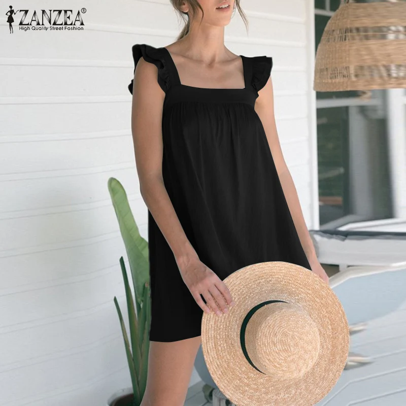 Элегантное однотонное платье ZANZEA с оборками, женский летний сара...