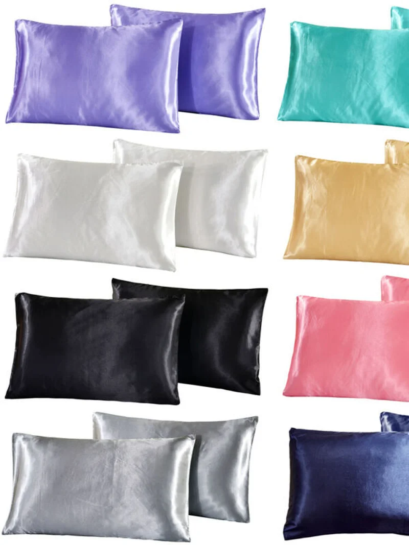 Шелковая атласная наволочка 2 предмета, простые однотонные постельн...