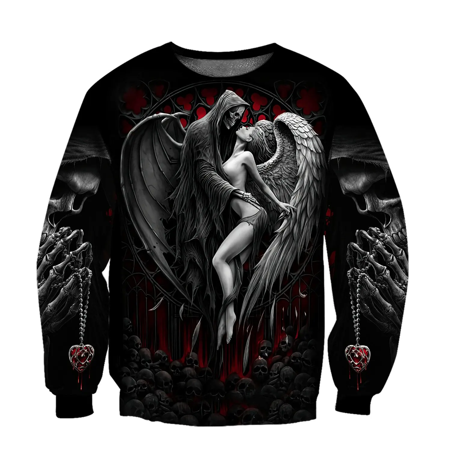 Повседневное Мужское пальто с 3D-принтом черепа, ангела и демона, Мужской пуловер, Женский свитшот, куртка унисекс, модная уличная одежда