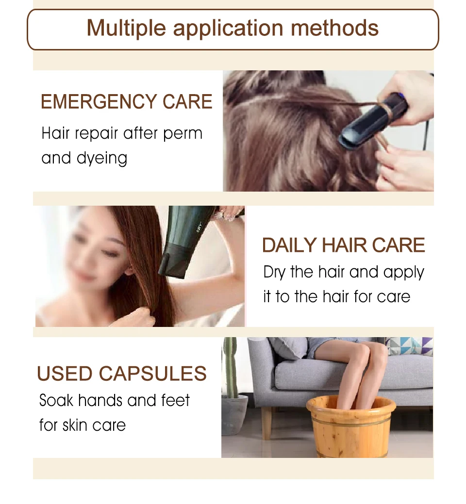 Имбирный полигональный капсульный эффект:Капсула для роста волос, изготовленная из кунжута, имбиря, корня из флиса и витамина B5, может сделать рост ваших волос, получить богатое питание и сохранить его гладким и блестящим, делает ваши волосы здоровыми и черными.Эффект касторового масла:Это может повысить жизненную силу волосяных фолликул, регенерировать волосы, замедлить скорость выпадения волос и сделать волосы густыми и естественными. Можно использовать как ресницы, так и брови.Использование:1. Нарежьте капсулу и Налейте витамин на ладонь2. Нанесите на сухие волосы после мытья. Нанесите равномерно на волосы или непосредственно на кожу головы3. Держите его сухим, не краску, формируйте его как обычно.