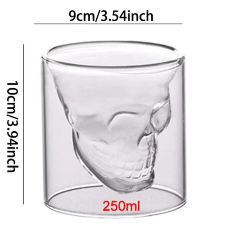 Кофейная чашка с черепом для эспрессо, стеклянная кружка с двойными стенками, чашка-скелет для виски, бара, бокал для вина, водки, бокал для вина, посуда для напитков, 250 мл, 150 мл