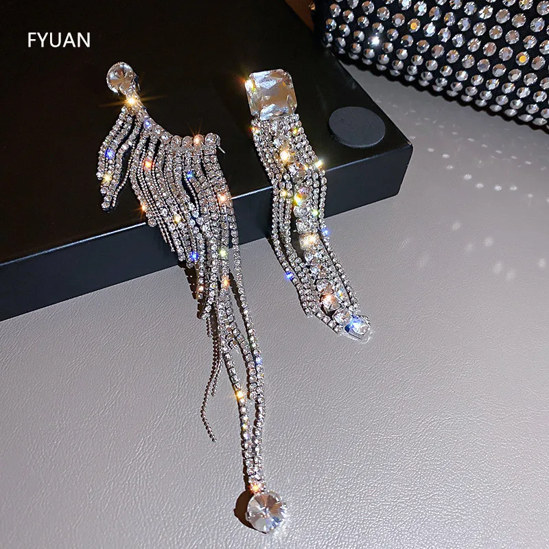 FYUAN Блеск Стразы асимметрия, свисающие серьги для женщин, серьги ...