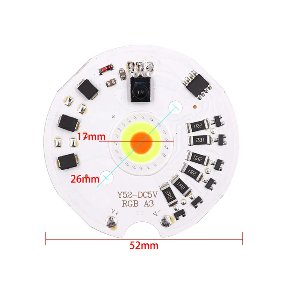 Бренд чипов: EpistarМатериал: пластина из алюминиевого сплава + силиконовая резинаМощность: около 3 ~ 5 Вт/цветВходное напряжение: 5 В постоянного токаИсточник питания: 5 В постоянного токаДиаметр COB: 52 ммПрименение: декоративные огни